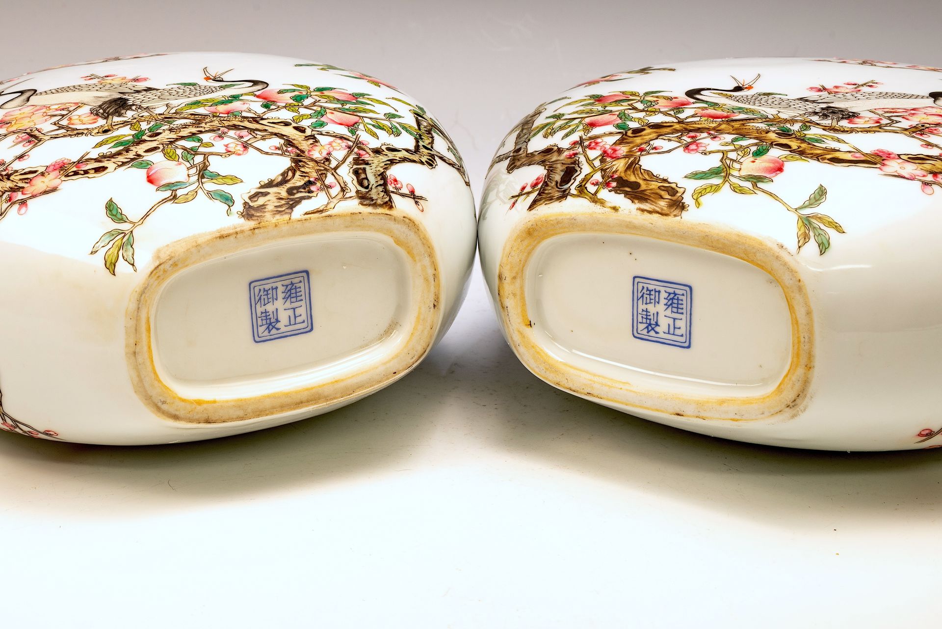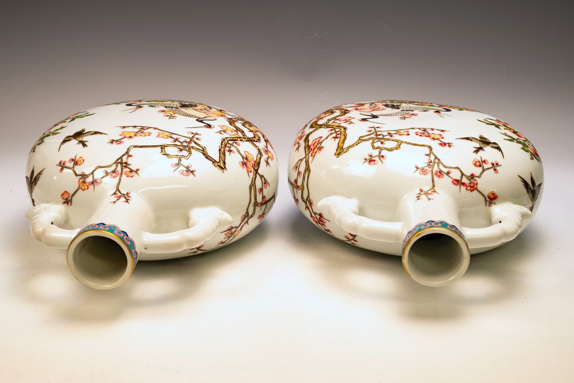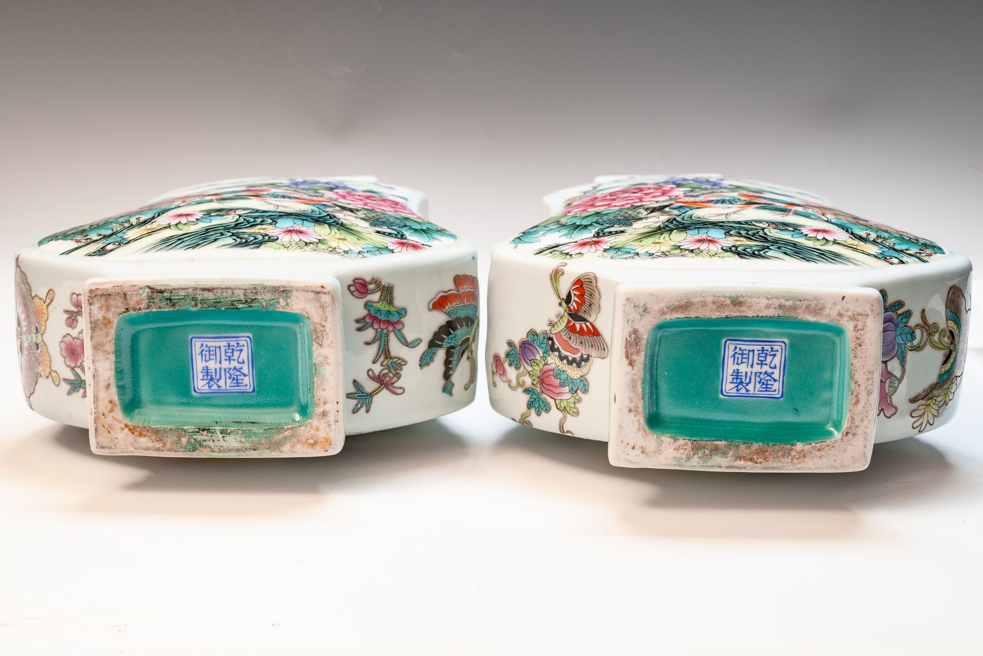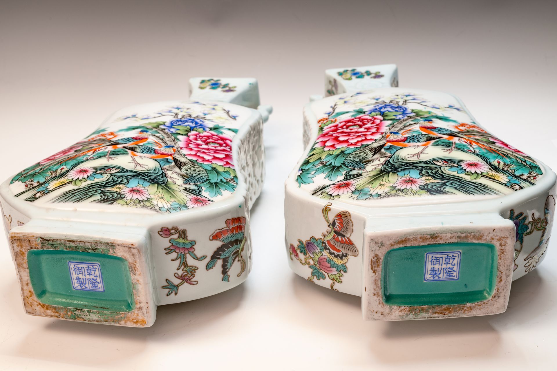 Mark and Period Yongzheng Pair of Falangcai Enamel Moon Flasks from the Qing Dynasty