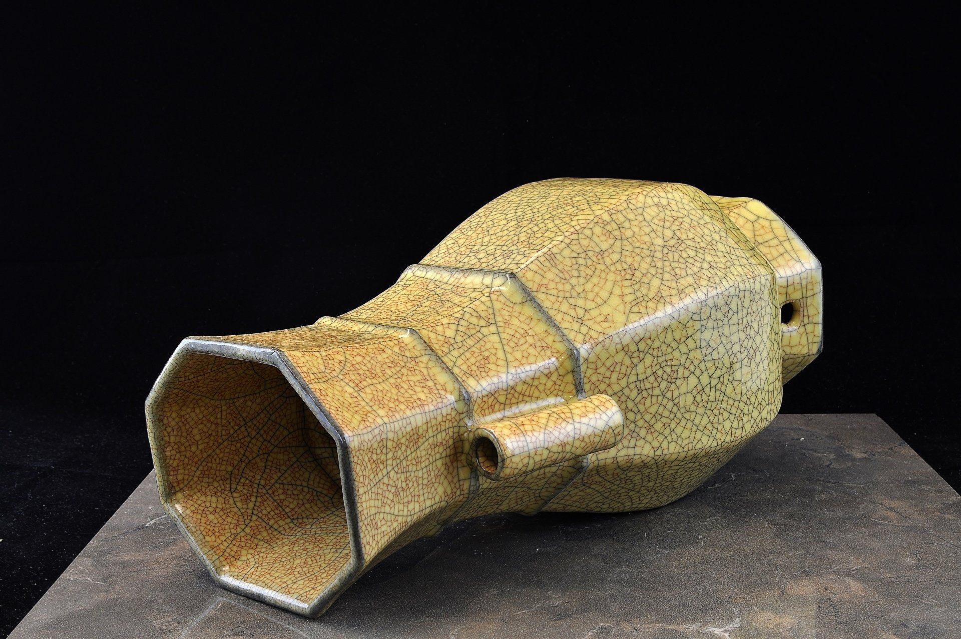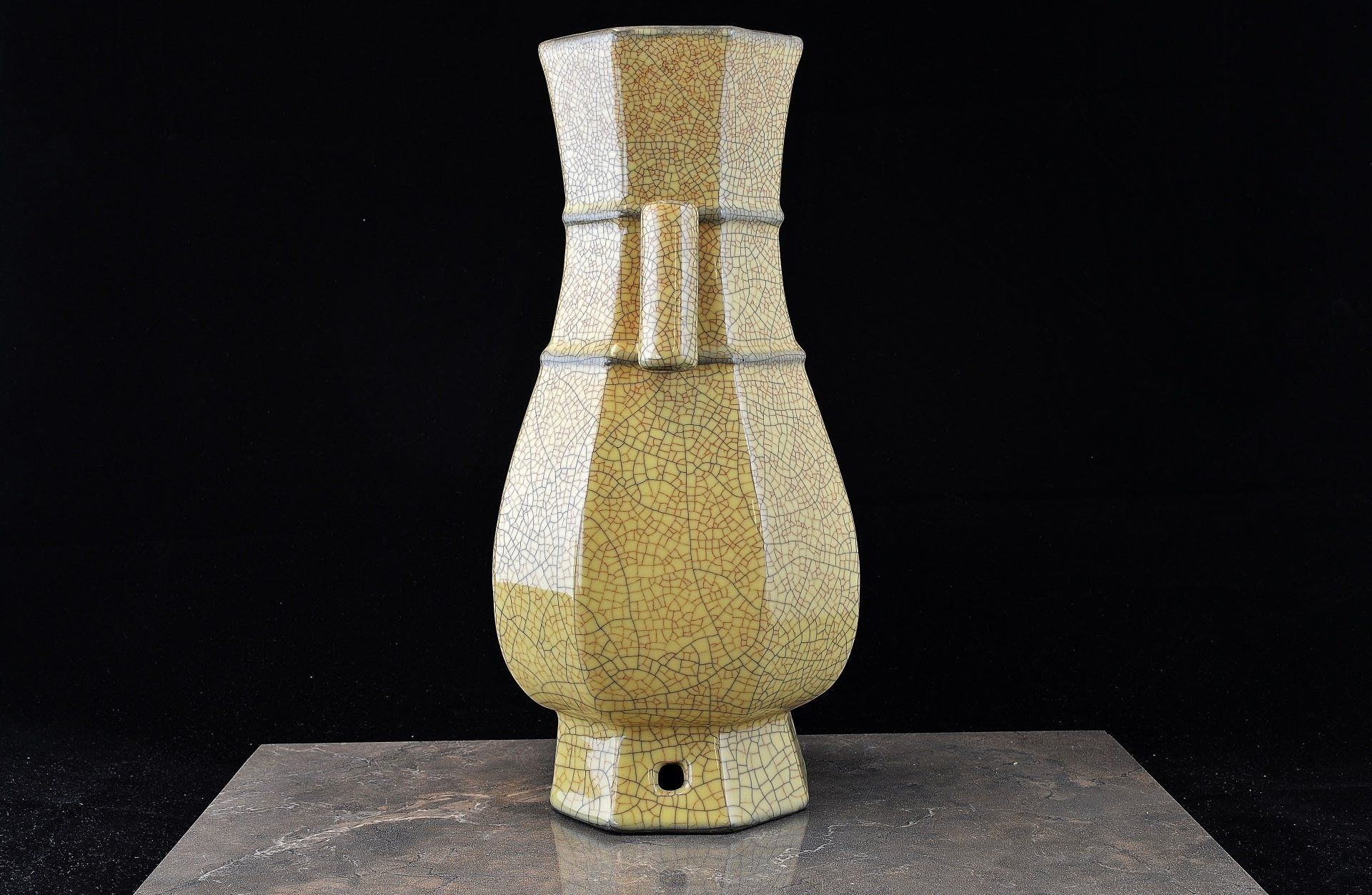 Изделия из печи Гэ-гэ эпохи Южной династии Сун/Юань: исключительная большая восьмиугольная ваза формы Ху с трубчатыми ушками и золотой нитью