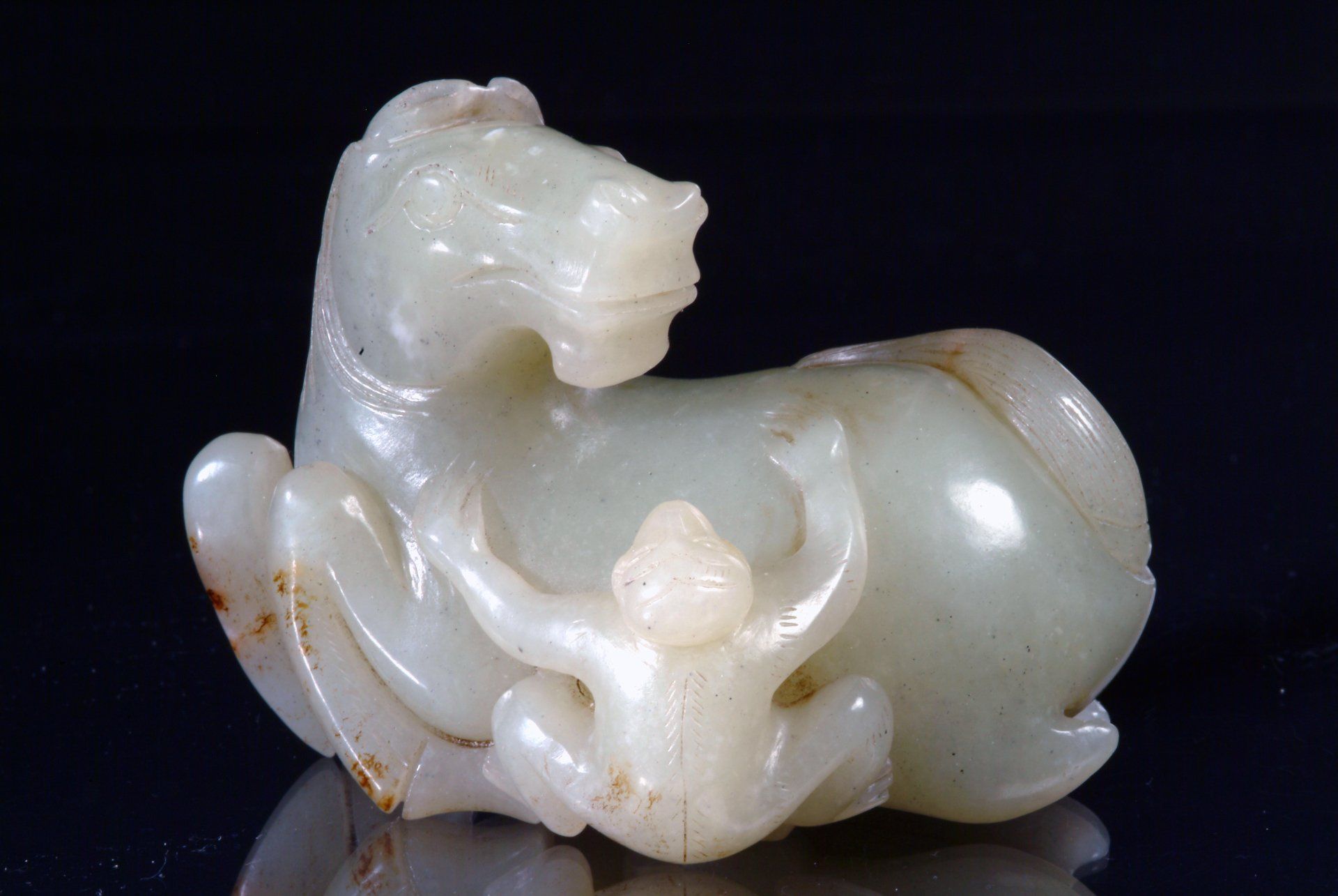 Фигурка лошади и обезьяны из селадонового нефрита эпохи династии Мин
