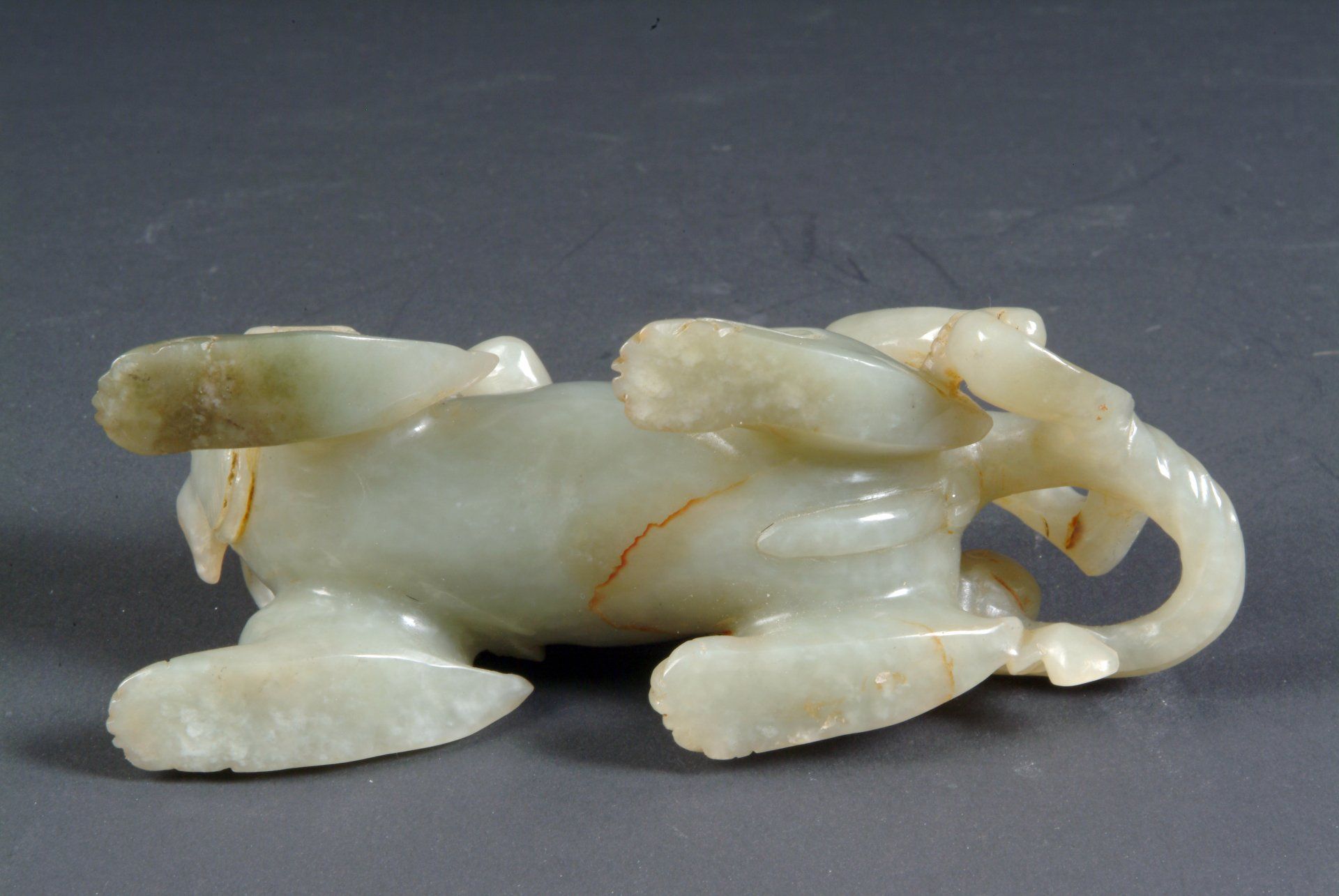 Скульптура лежащего мифического существа из бледно-серовато-белого нефрита эпохи династии Мин