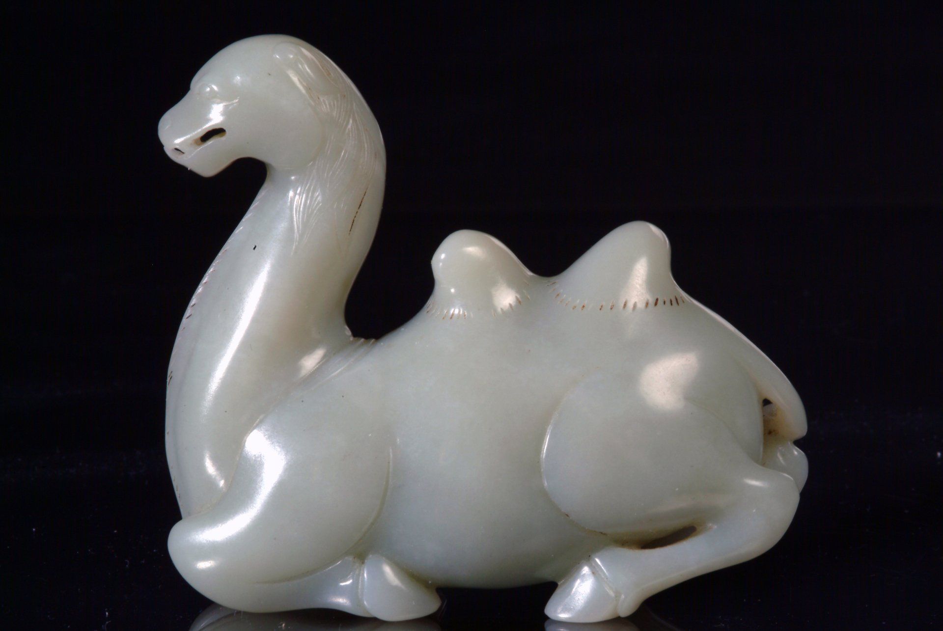 Статуэтка лежащего верблюда из бледно-серого нефрита эпохи династии Цин