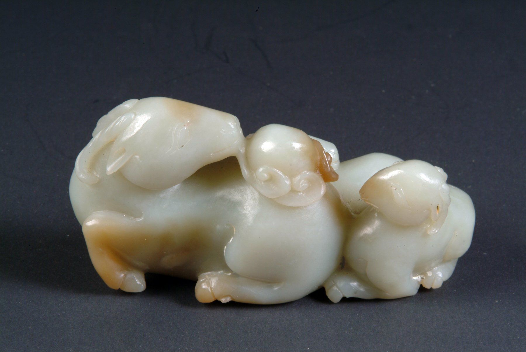 Скульптура из селадонового нефрита, изображающая отдыхающего барана в сопровождении потомков династии Цин
