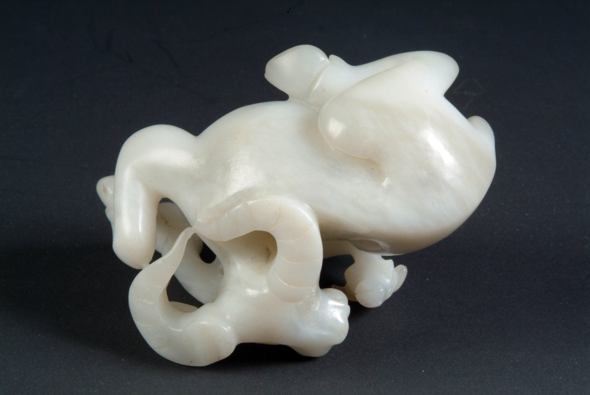 Скульптура трёхлапой лягушки из полупрозрачного бледно-серого нефрита эпохи династии Цин
