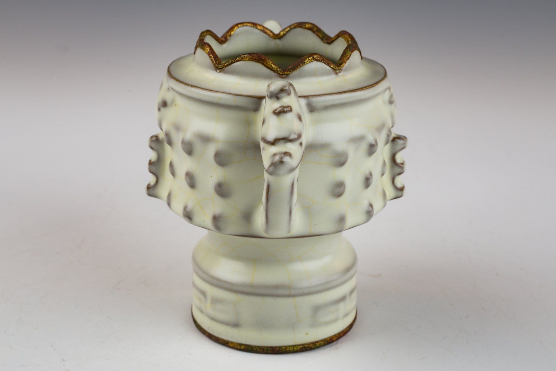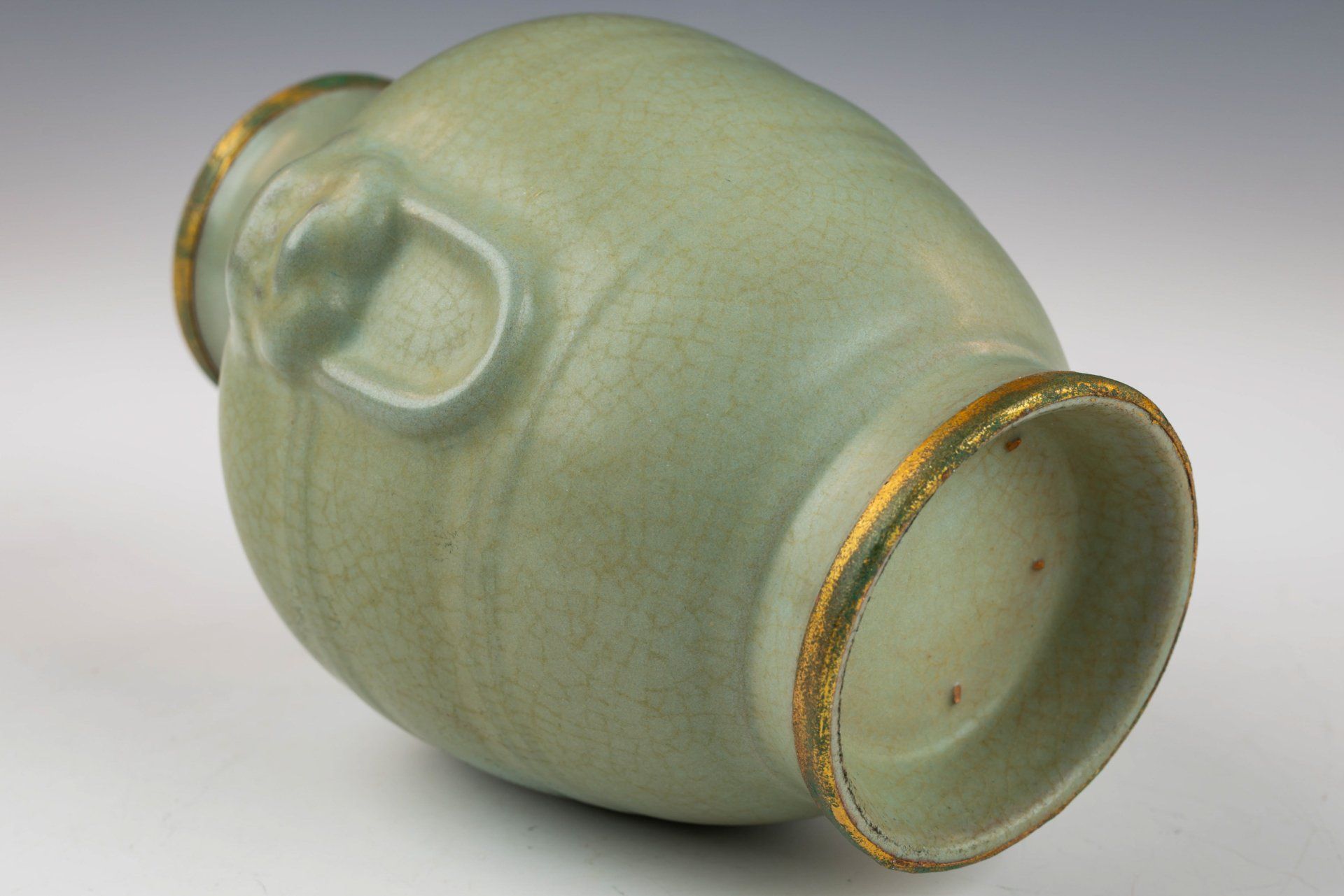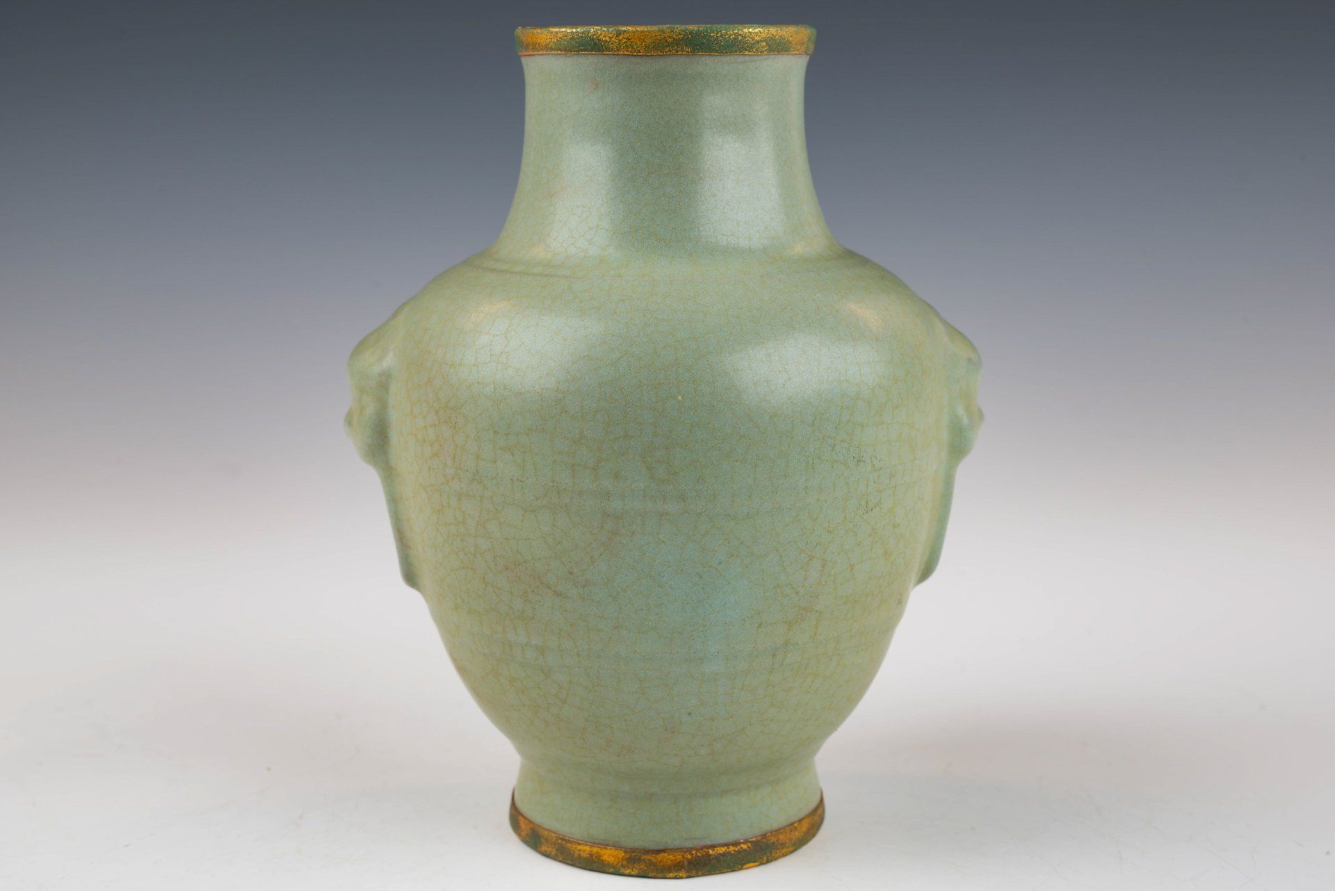Imperial Ru-Ware Vase with Tiger Handles Featuring Pale Celadon