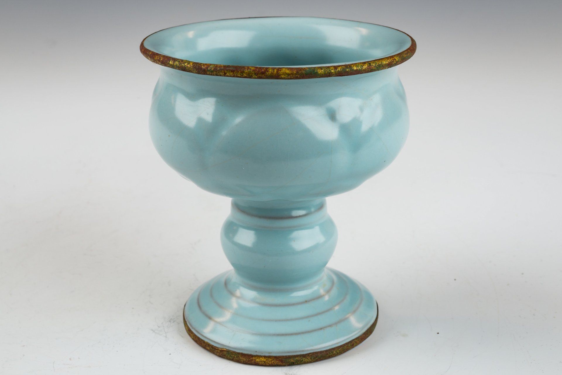 Sky-Blue Glaze Ru-Ware Stem Cup from the Northern Song Dynasty: