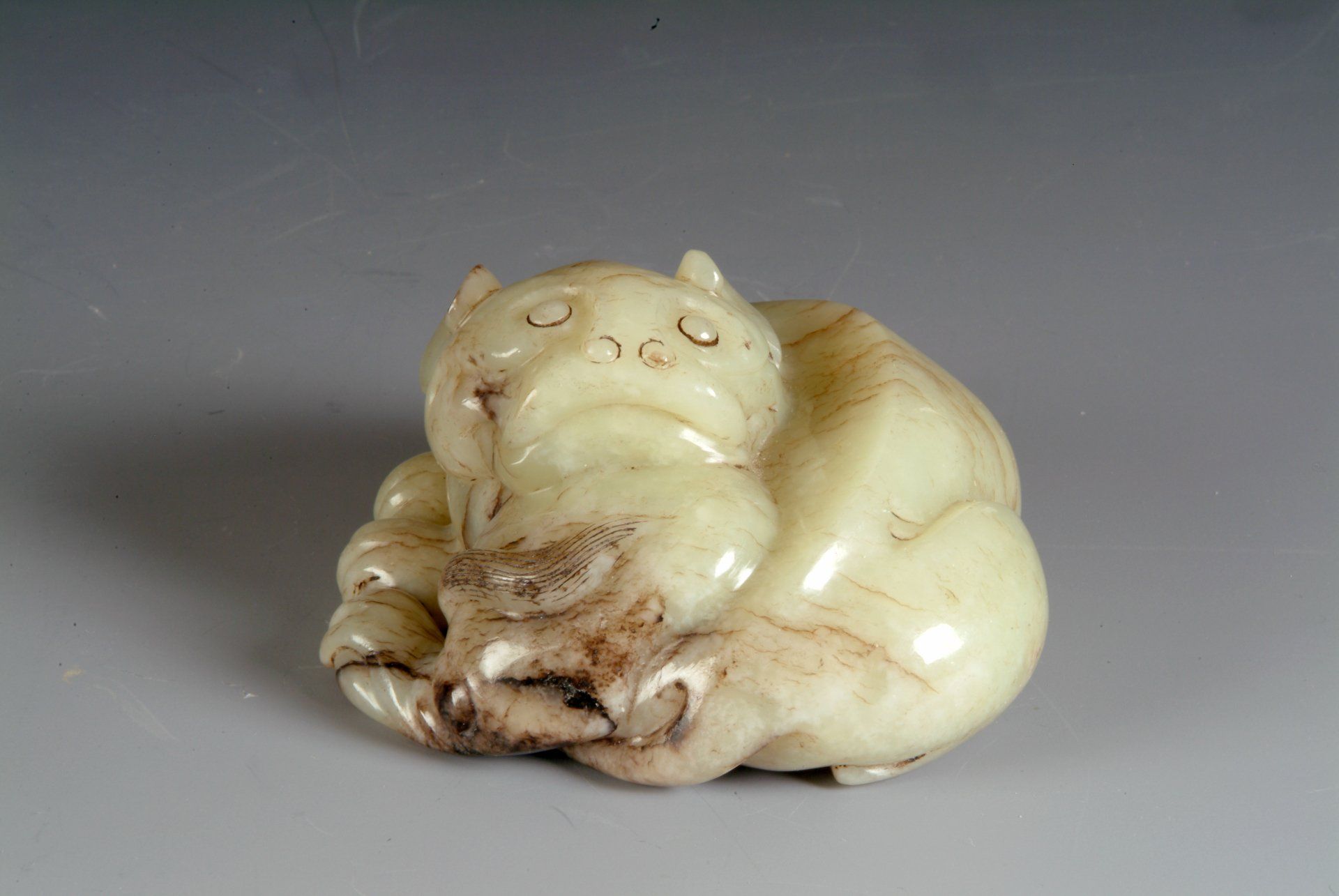 Onion Jade Recumbent Hound Sculpture from the Song Dynasty