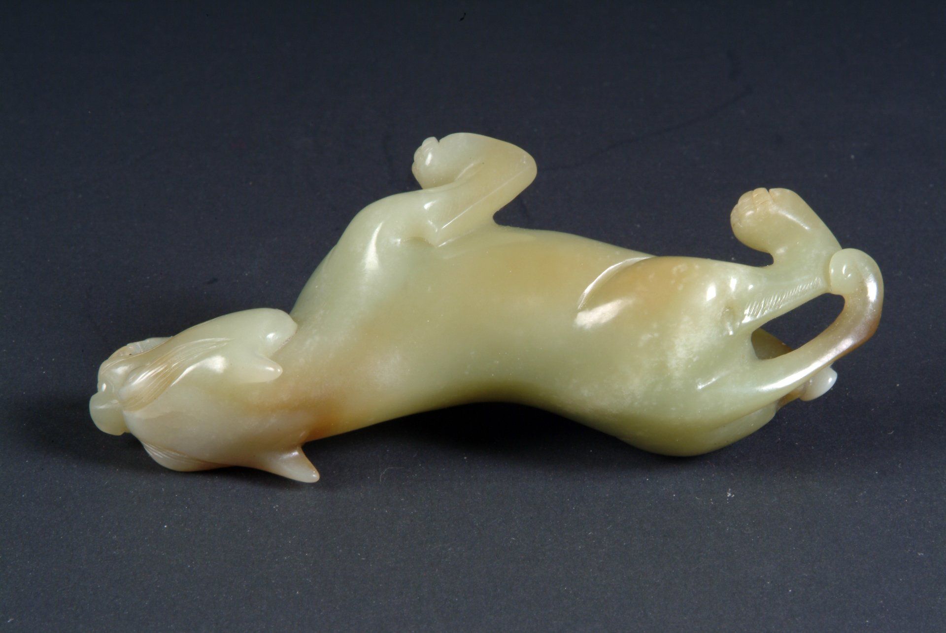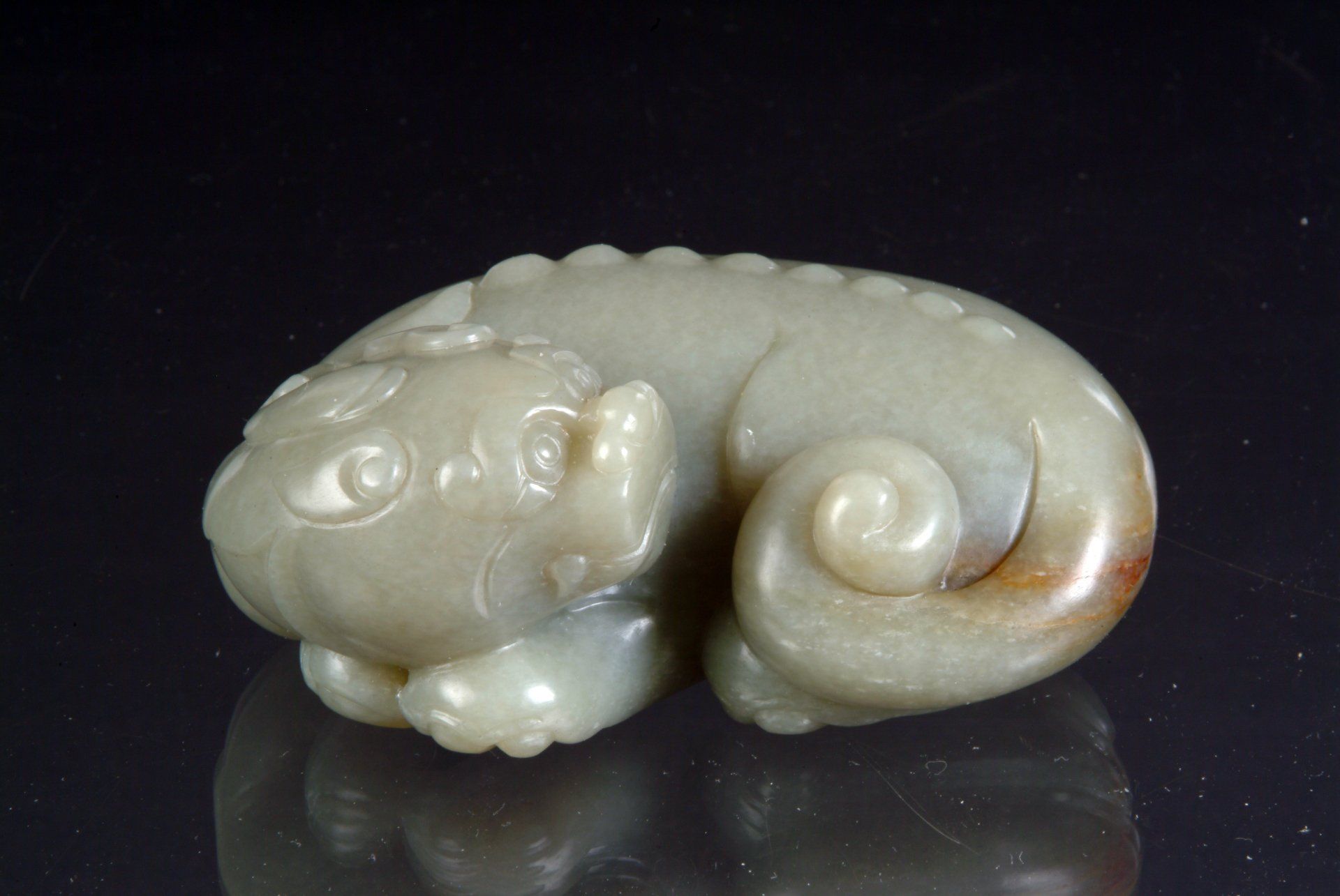 Song Dynasty Pale Celadon Jade Mythical Creature in Curled Form