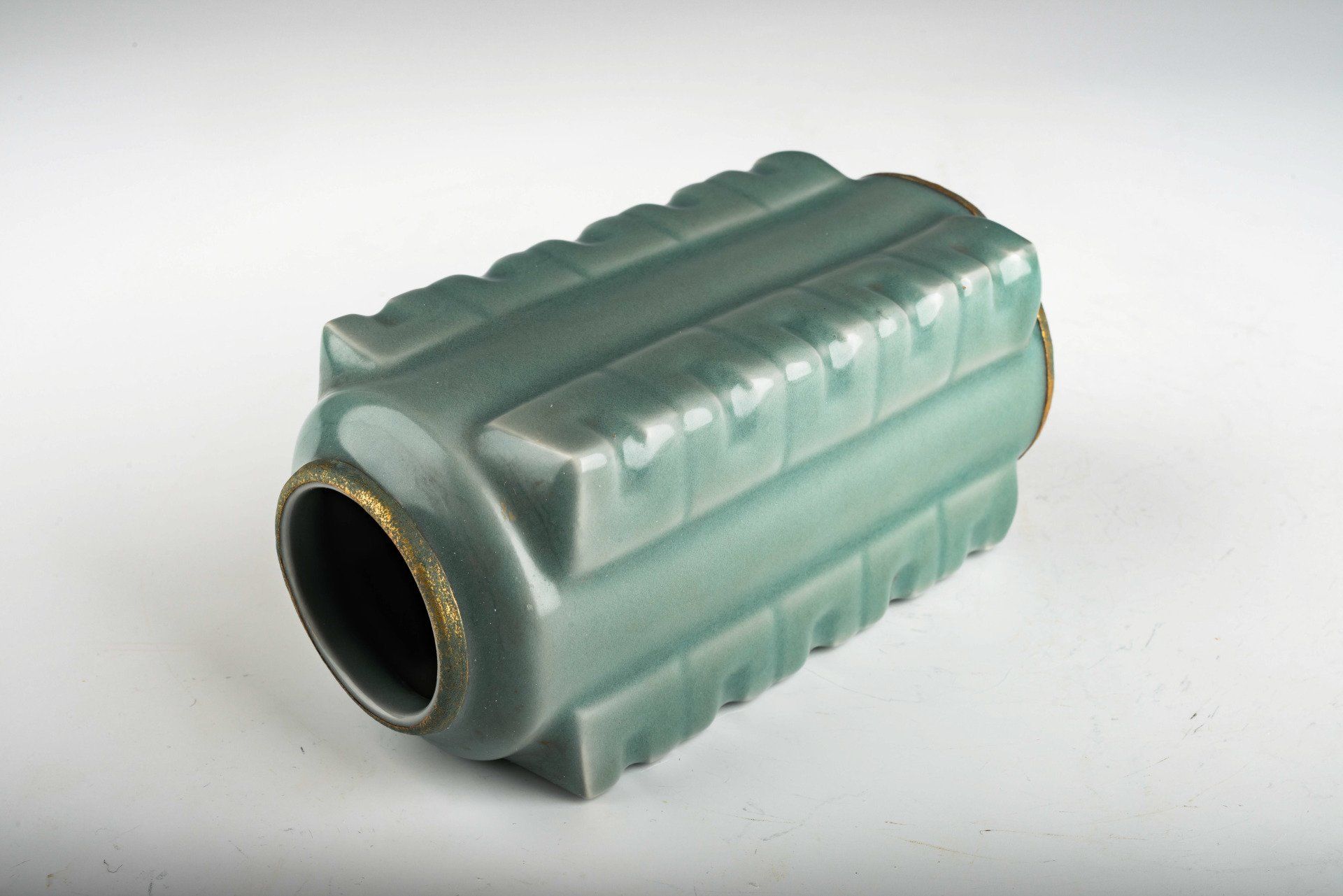 2nd Commissioned Ru Ware Vase With Gilded Over Copper Bands And Crushed Agate In Glaze