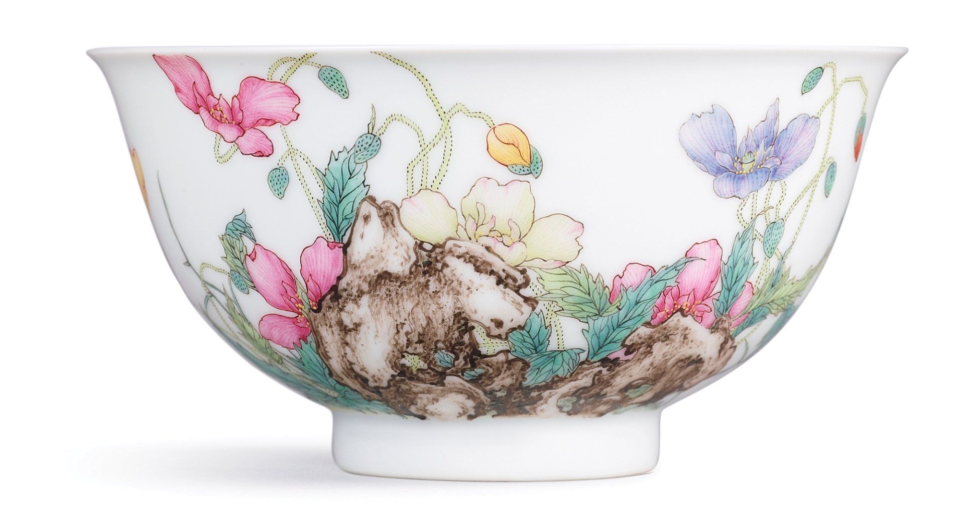 苏富比拍卖行售出了这只清代法兰嘎彩罂粟花碗。