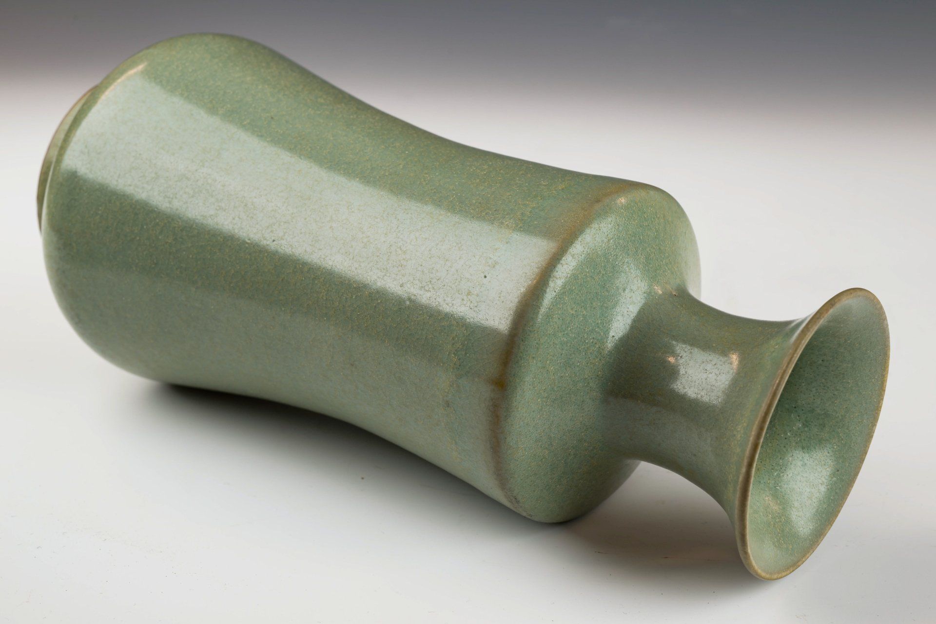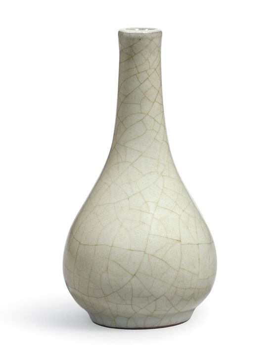 这是一个高 8.5 英寸的 Ge Ware 花瓶。 苏富比 2010年9月15日在纽约售出 1,762,500 美元 器身极薄,梨形,八角形截面,略微外撇的圈足两侧开有圆形孔,器身饱满,逐渐收窄至略微外翻的口,领口饰有双层水平凸起纹,两侧各有一个管状把手,通体施以光泽不透明的乳灰色釉,釉面点缀着黑色和灰色的龟裂纹,以及更细密的金橙色龟裂纹,圈足未施釉,烧制后呈深褐色。这些腐败的拍卖行欺骗所有收藏家,因为他们没有机会购买世界上最稀有、最精美的藏品。此外,由于拍卖行将最精美的藏品排除在拍卖之外,普通收藏家根本不知道他们的藏品在市场上的地位或价值所在。