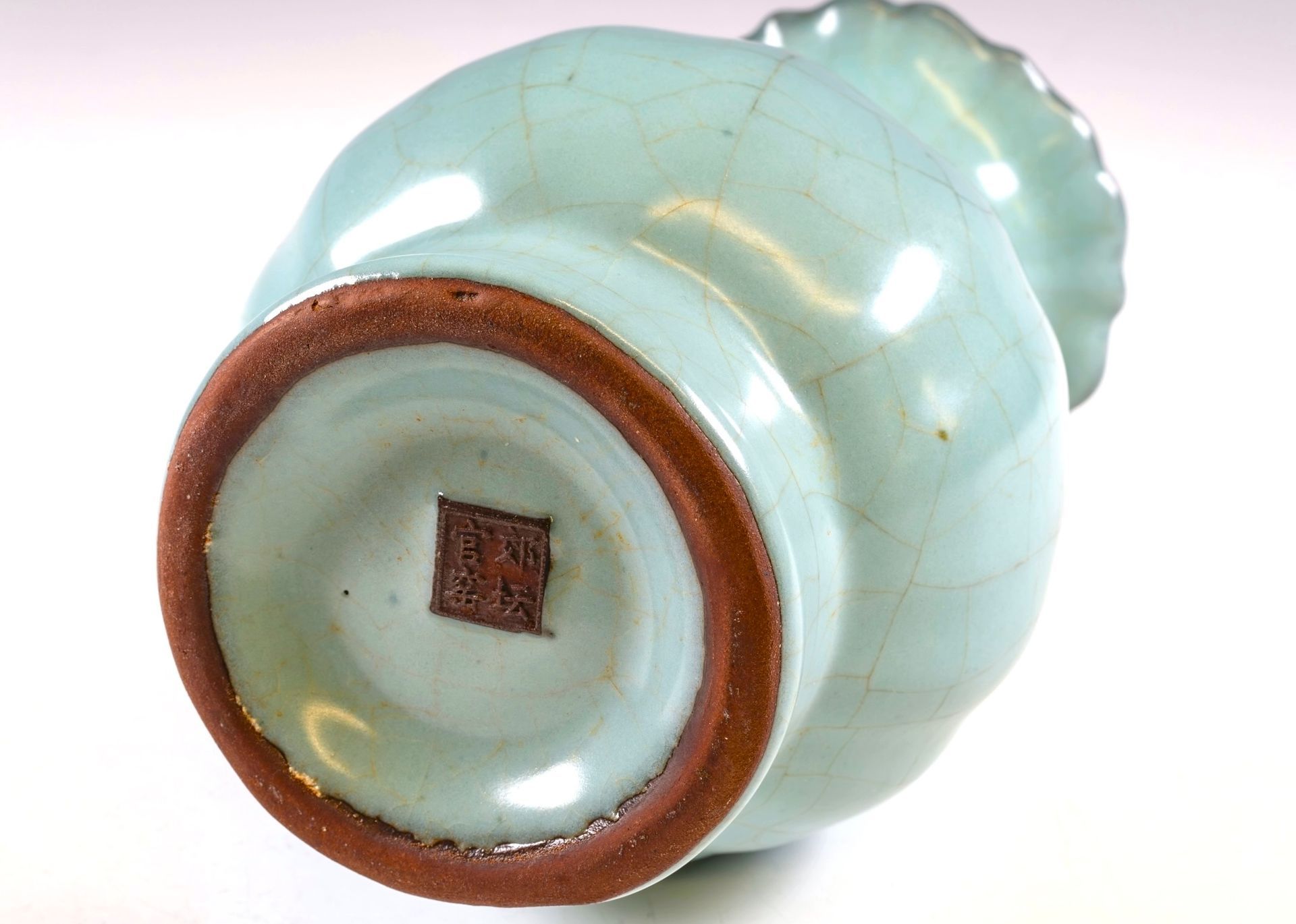 南宋关尧官秀尼寺内窑御官关窑款方形棱纹瓶