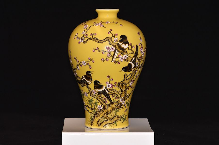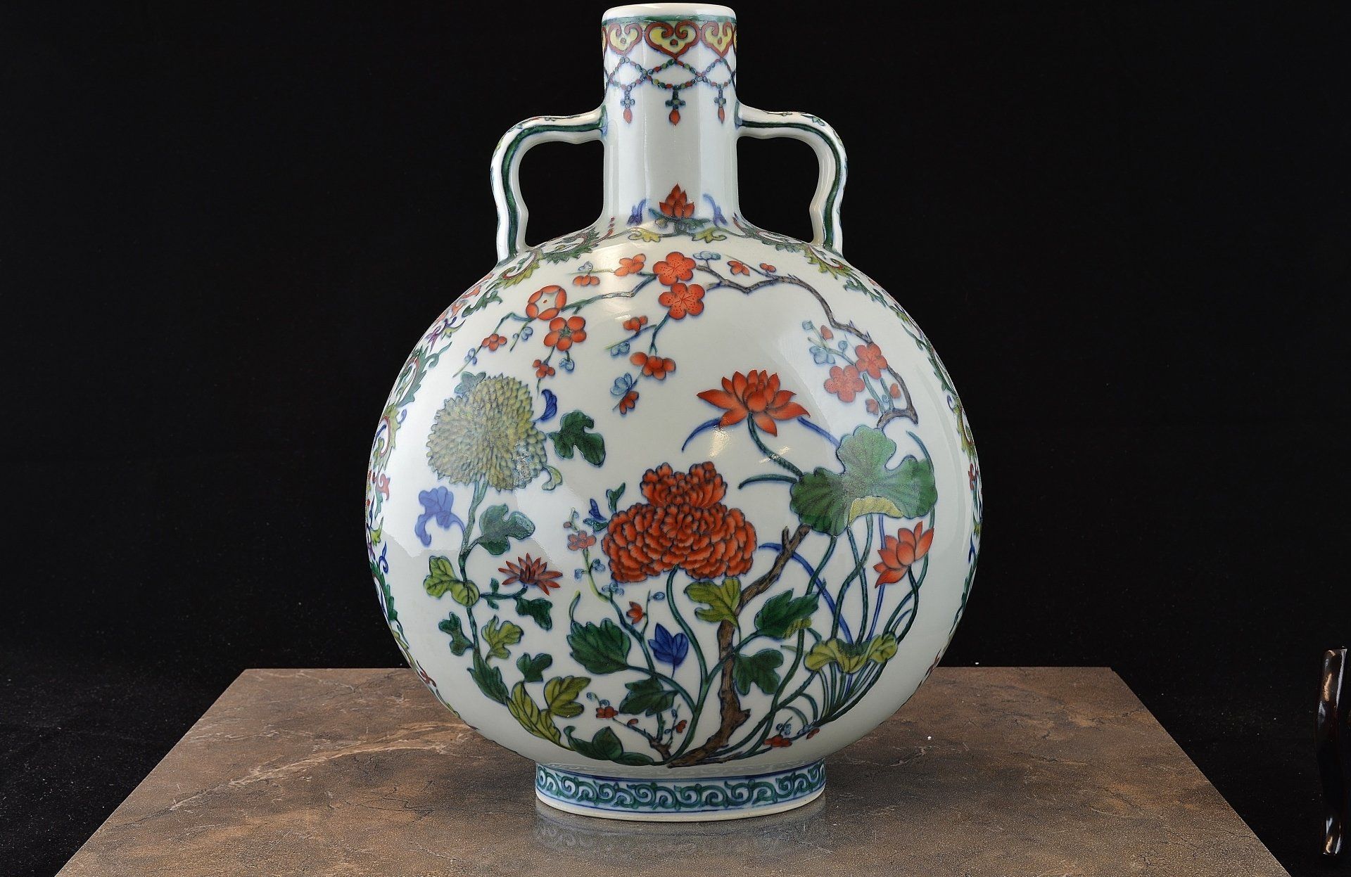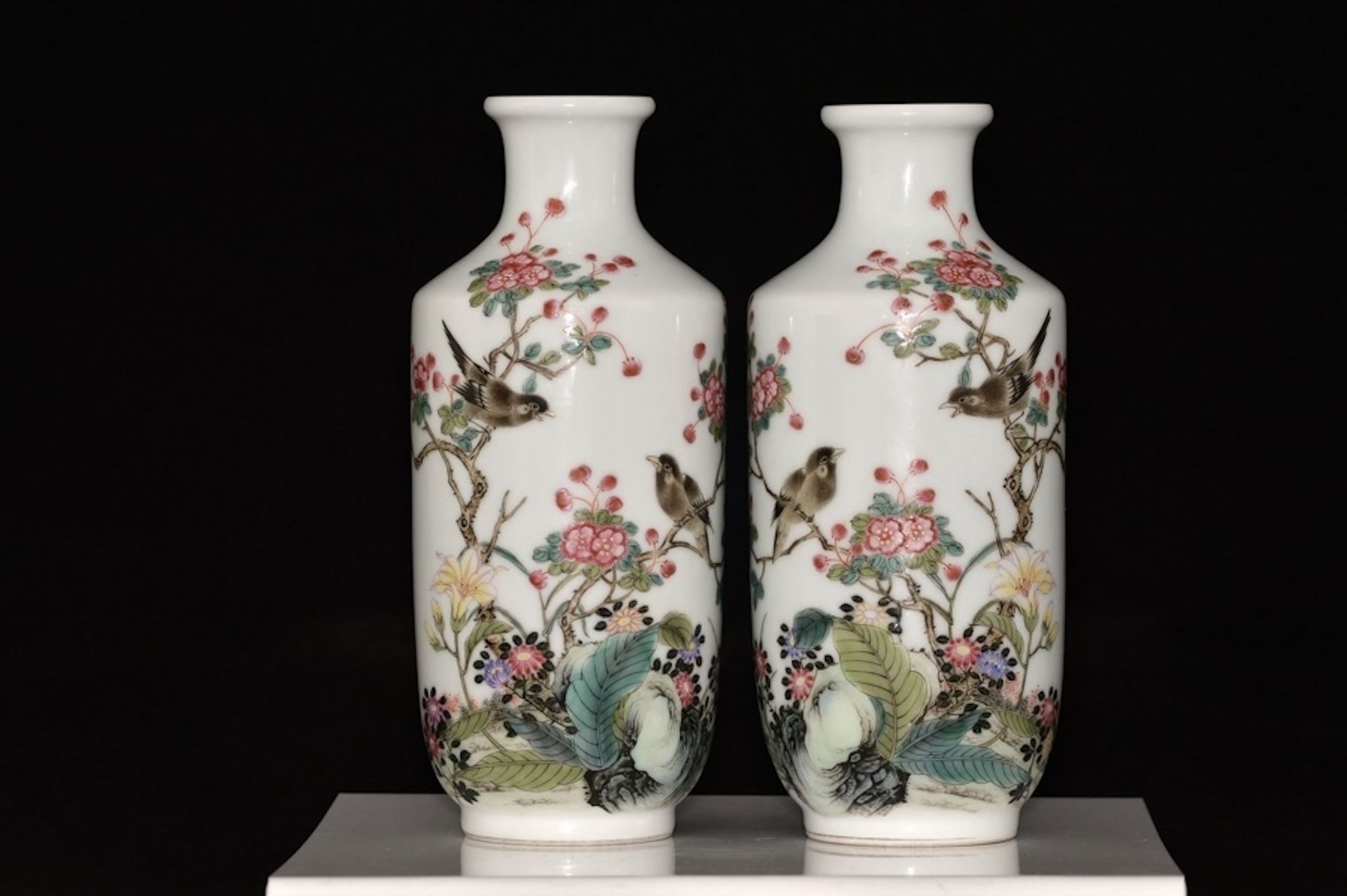 雍正时期珐琅彩瓷瓶,饰有清代御制四字款