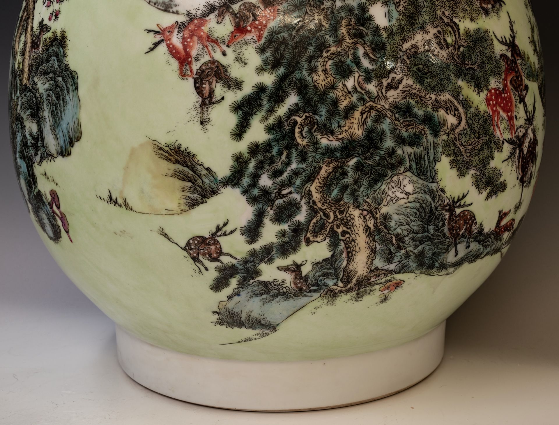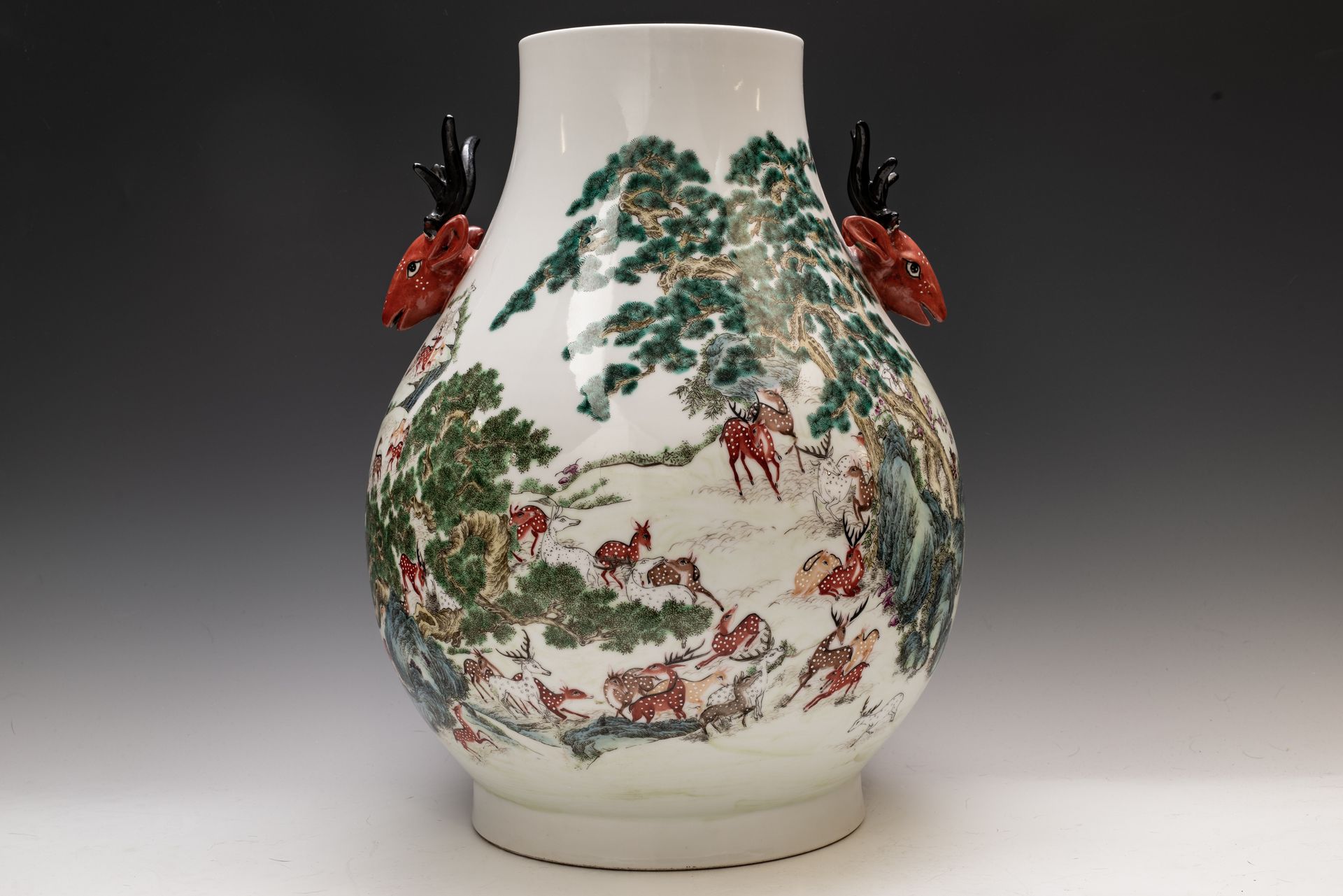 清代精美粉彩百鹿纹瓶,带有乾隆年款、款识及年代。