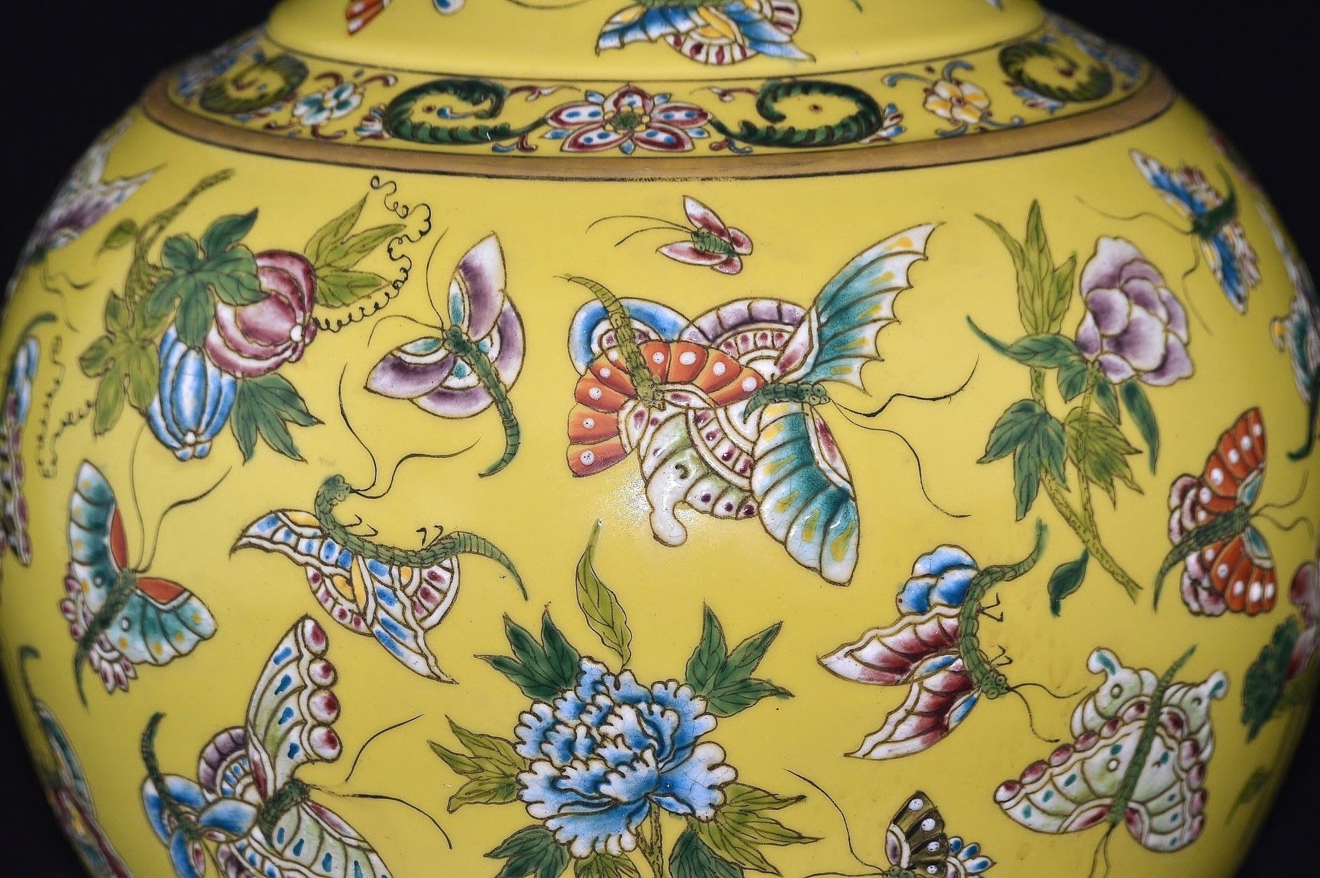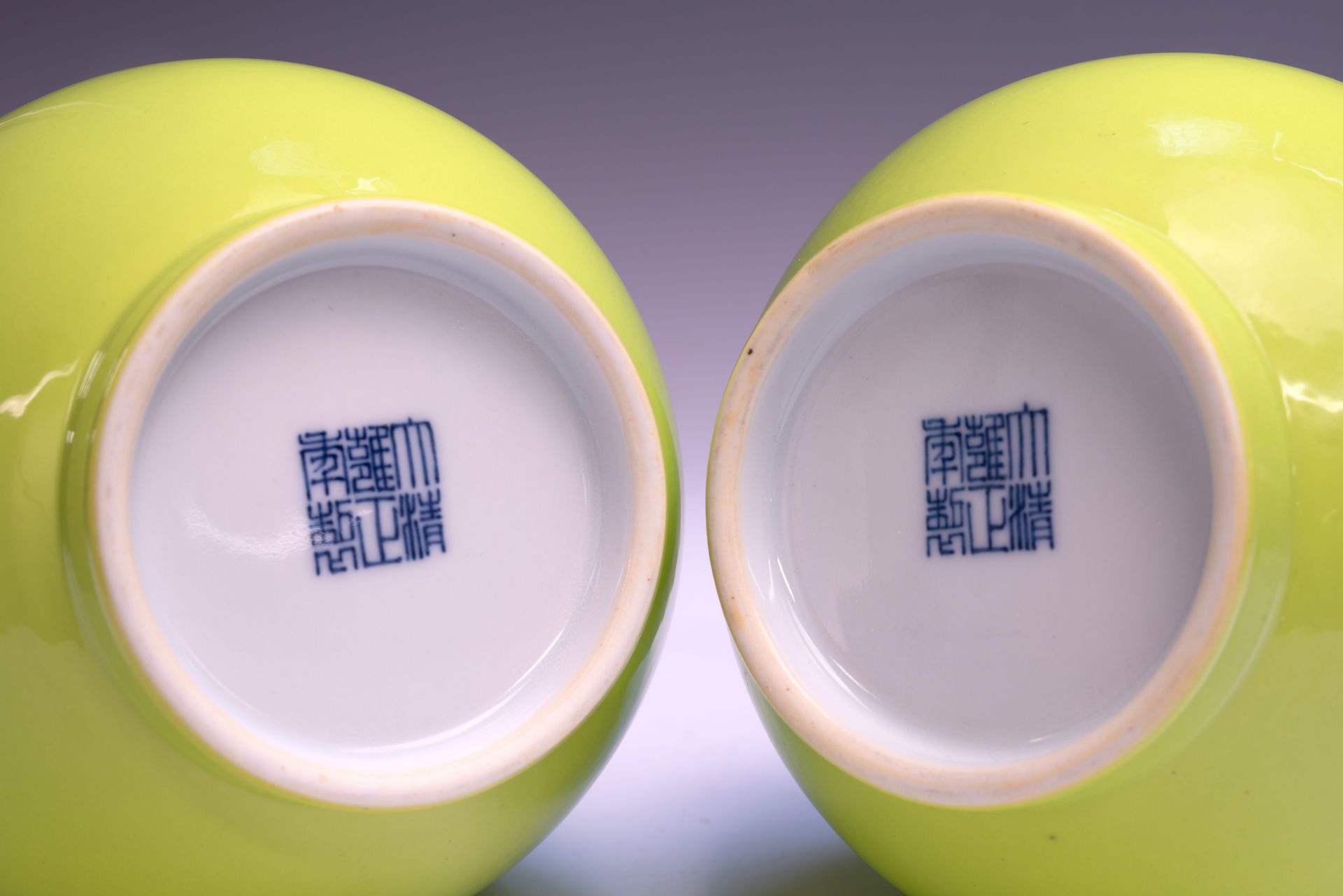 一对清康熙时期黄地法兰彩珐琅碗,碗底有深粉色双方框四字“玉治款”,康熙时期。