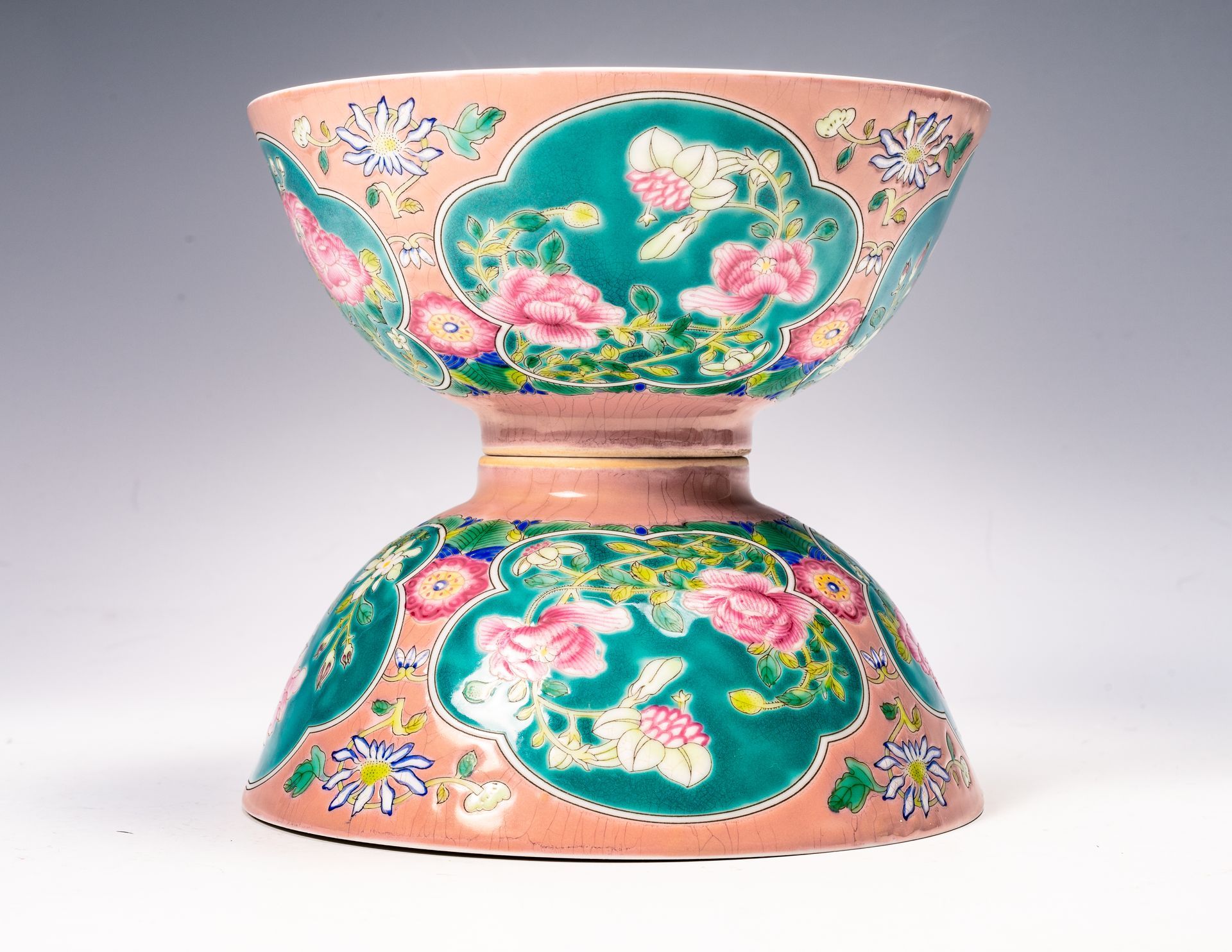 康熙年间粉地法兰斑彩碗,碗底深粉色“玉治款”四字,清代出品。