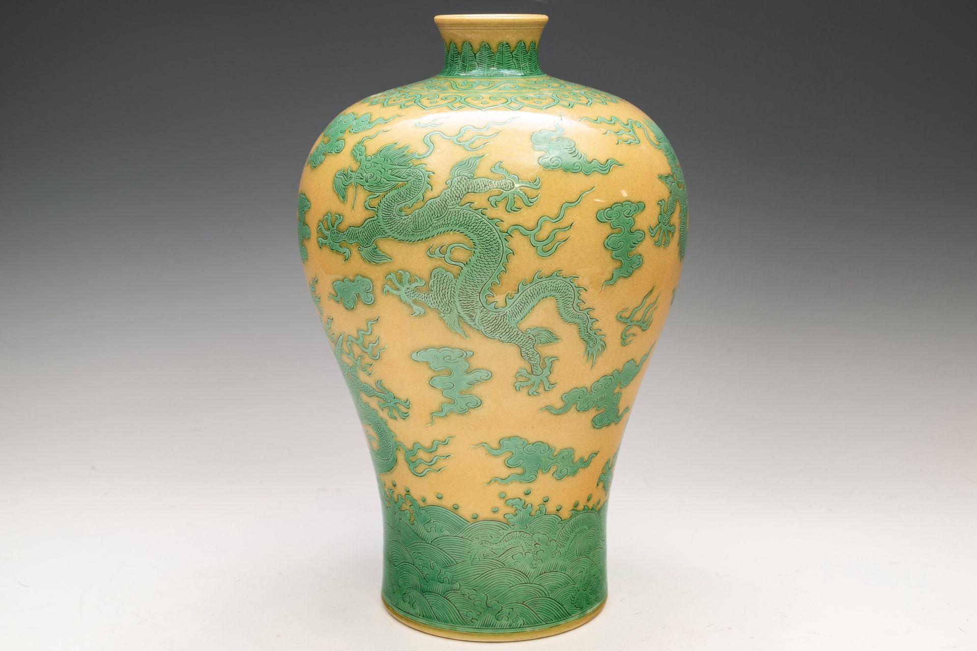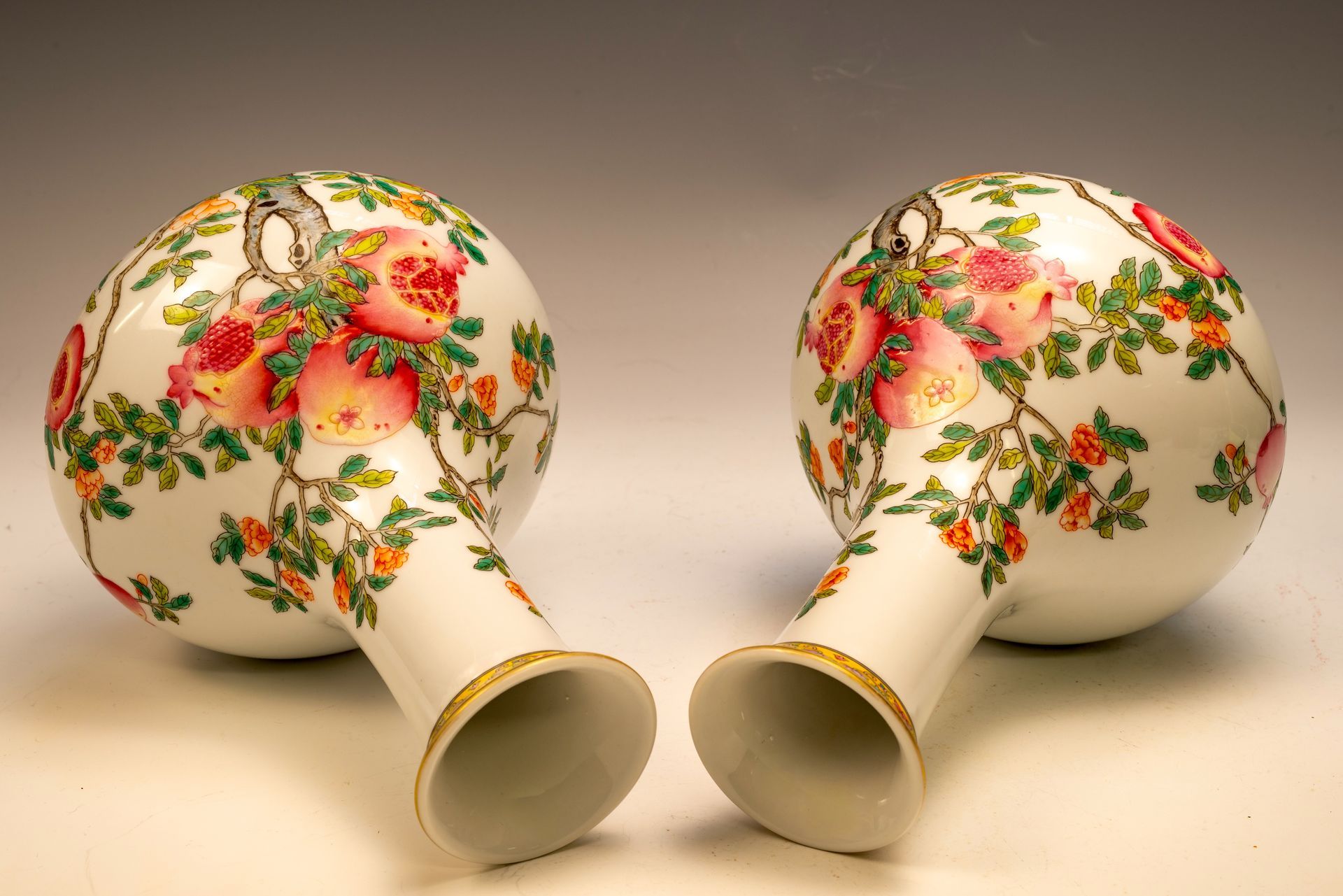 清代雍正时期御用瓷瓶:梨形石榴树纹,珐琅彩绘,瓶底有双方框“玉治”四字款识。