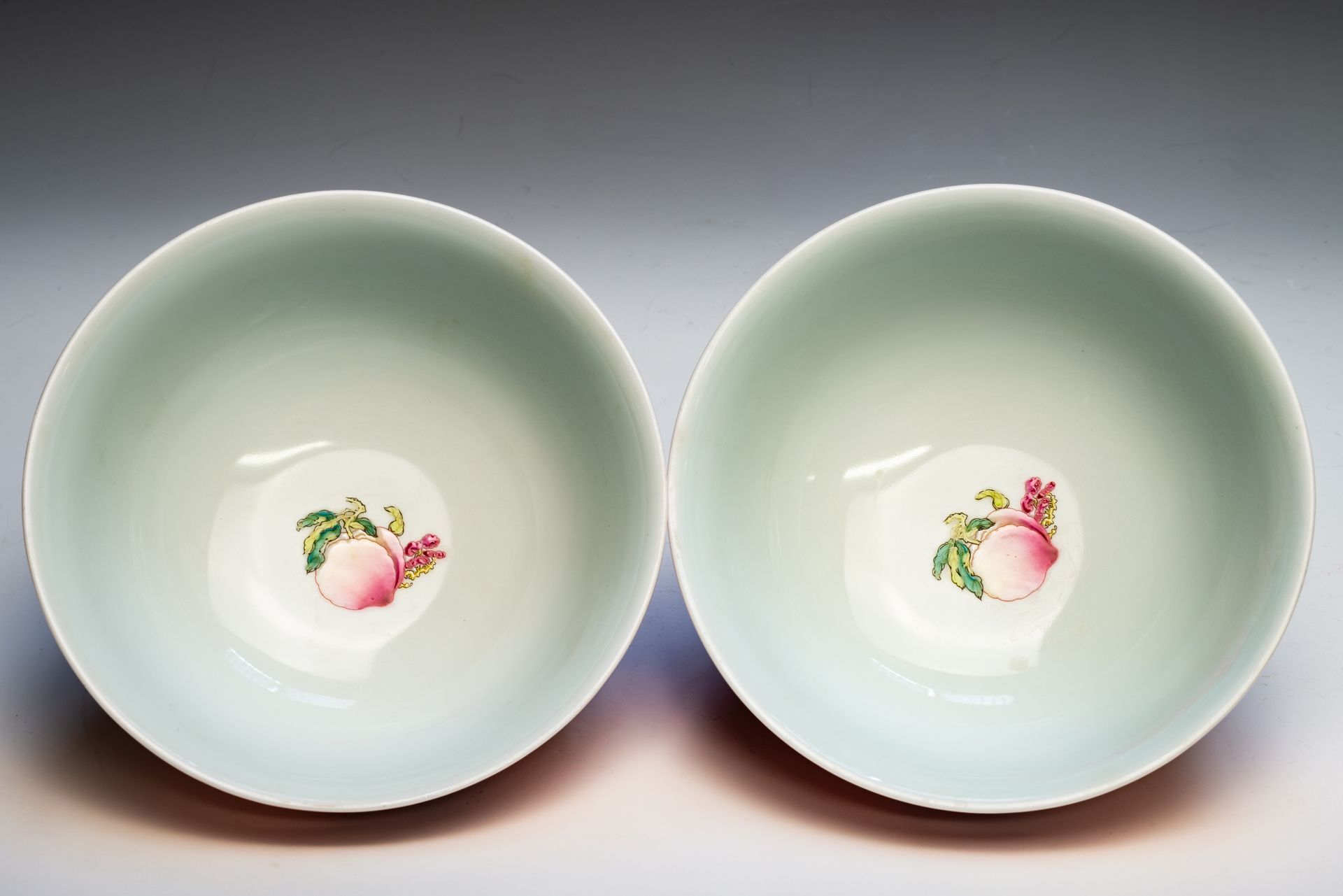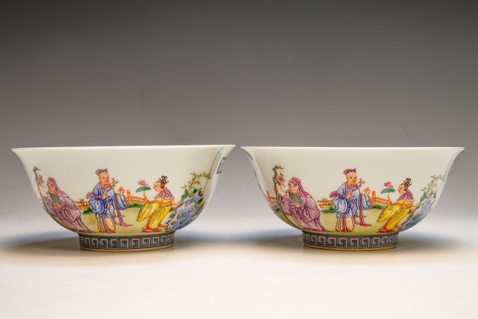 清乾隆时期皇家瓷碗一对,底部有六字款识及诗文题款,珐琅彩工艺。