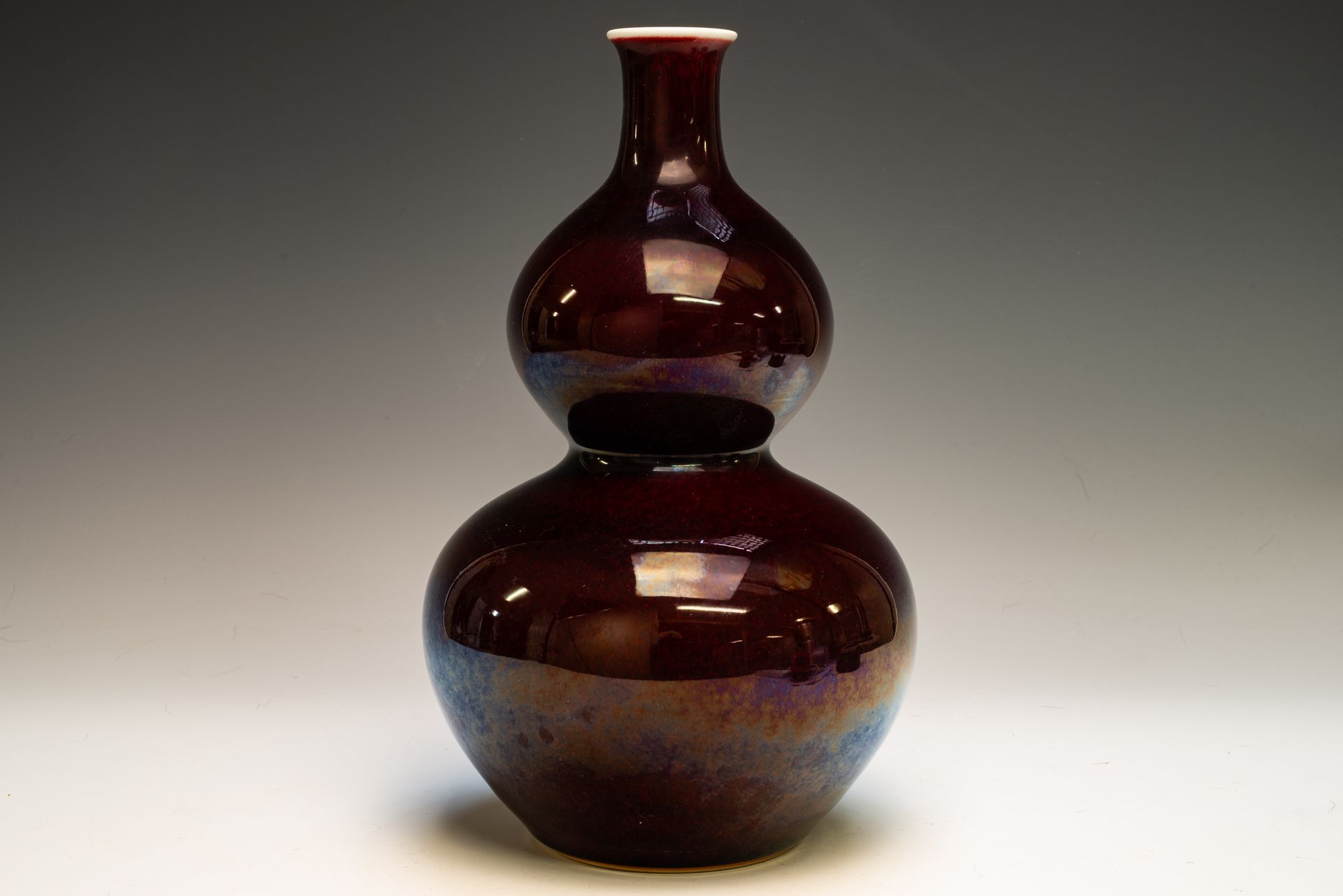 这件清代乾隆瓷瓶,是乾隆时期瓷器的代表作,瓶身呈优雅的卵圆形,以浓郁的红色为底。瓶身饰以精细的金线枝花纹,并绘有八只黑白珐琅彩绘的飞鸟。金线描绘流畅自如,飞鸟羽毛的细节刻画则展现了精湛的技艺,运用了极细的笔触,力求达到极高的精准度。仔细观察这件瓷器,尤其关注其精细的细节、色彩运用和明暗处理,对于领略其内在的平衡感和层次感至关重要。这些观察对于深入了解乾隆时期御制瓷器的特征至关重要。值得一提的是,乾隆款识位于瓶身中央,这是真品乾隆时期瓷器的标志。乾隆时期被公认为是中国瓷器生产的鼎盛时期。这件精美绝伦的卵圆形瓷瓶高约47厘米(18.5英寸)。