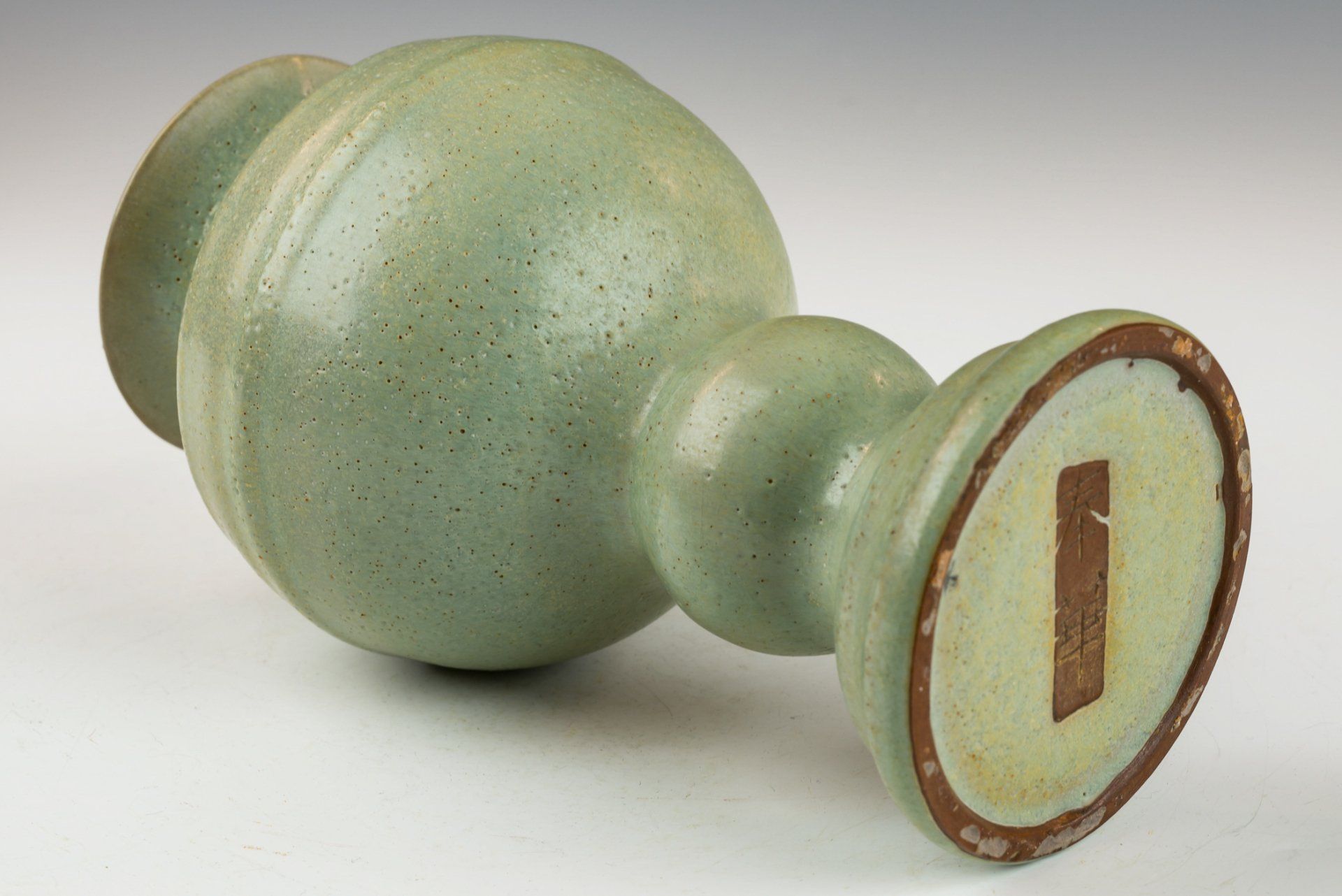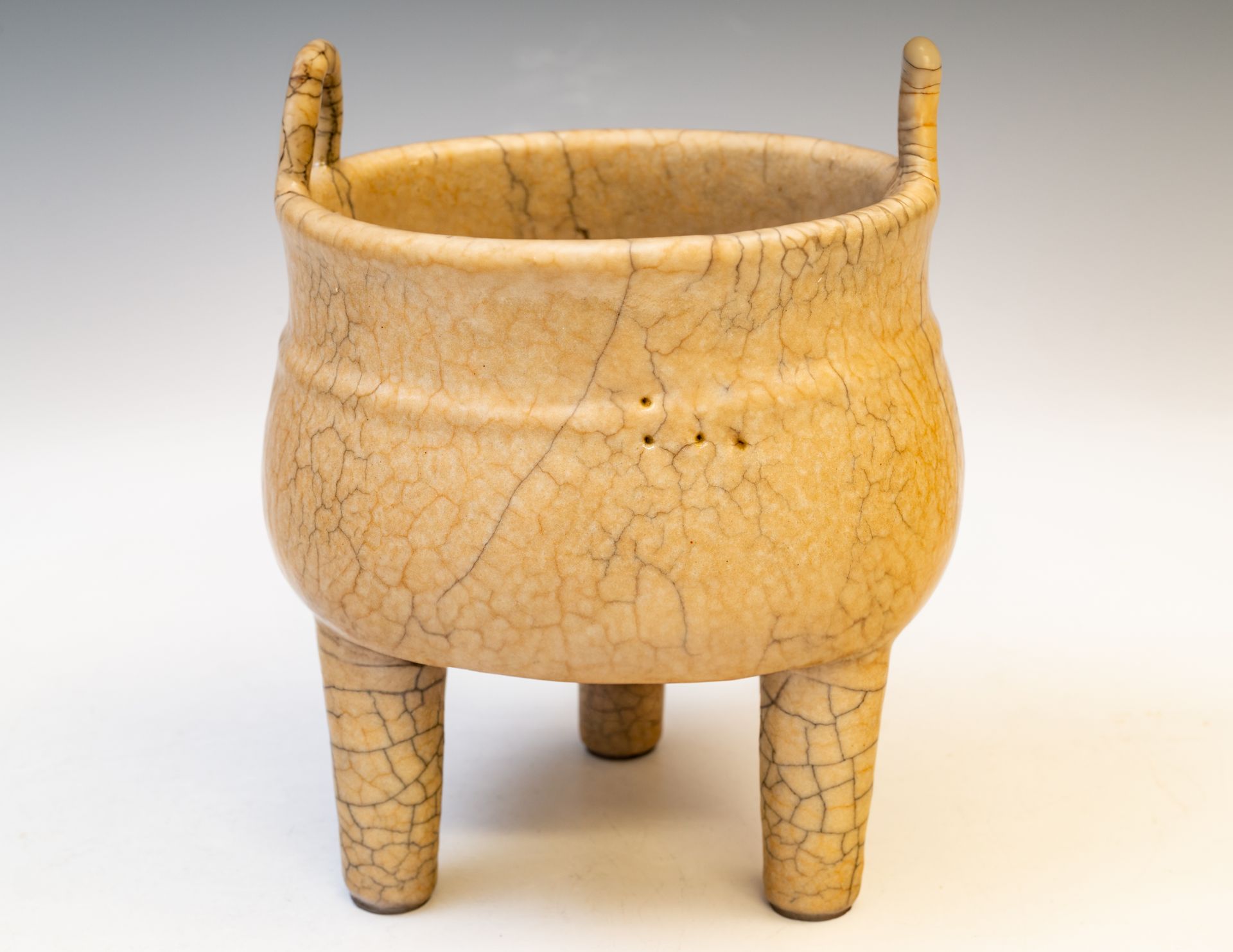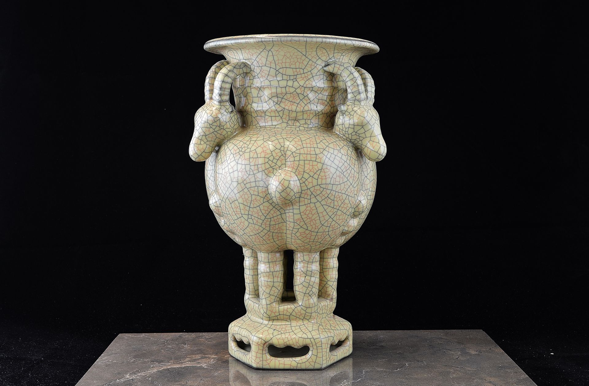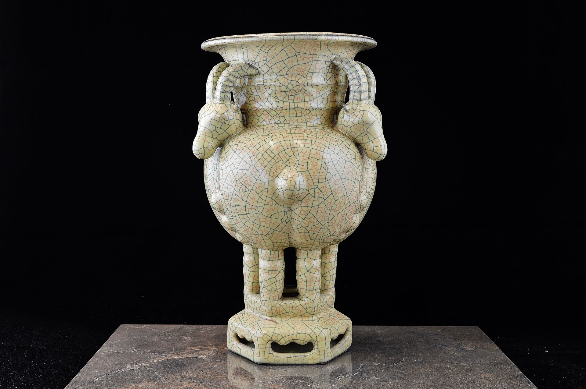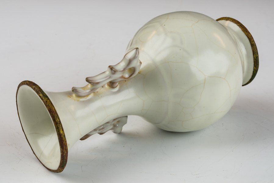 This is a Ge Ware vase 8 1/2 inches tall Sotheby's sold In New York 9/15/2010 for $1,762,500.usd very thinly potted, of pear shape and octagonal section, resting on a slightly flared foot pierced with a circular aperture on the sides, rising from a swelling body and tapering to a gently everted mouth, the collar with a double-band of horizontal raised ribs, flanked by a pair of tubular handles, applied overall with a lustrous opaque creamy-gray glaze, suffused with black and gray craquelure among finer golden-orange crackles, the footrim unglazed and burnt to a dark-brown color in the firing These corrupt Auction Houses cheat all collectors because they don't have the opportunity to purchase the rarest and finest pieces in the world also by keeping the finest pieces out of their auctions the average collector has no idea where their pieces fit the marketplace or what the value should be.