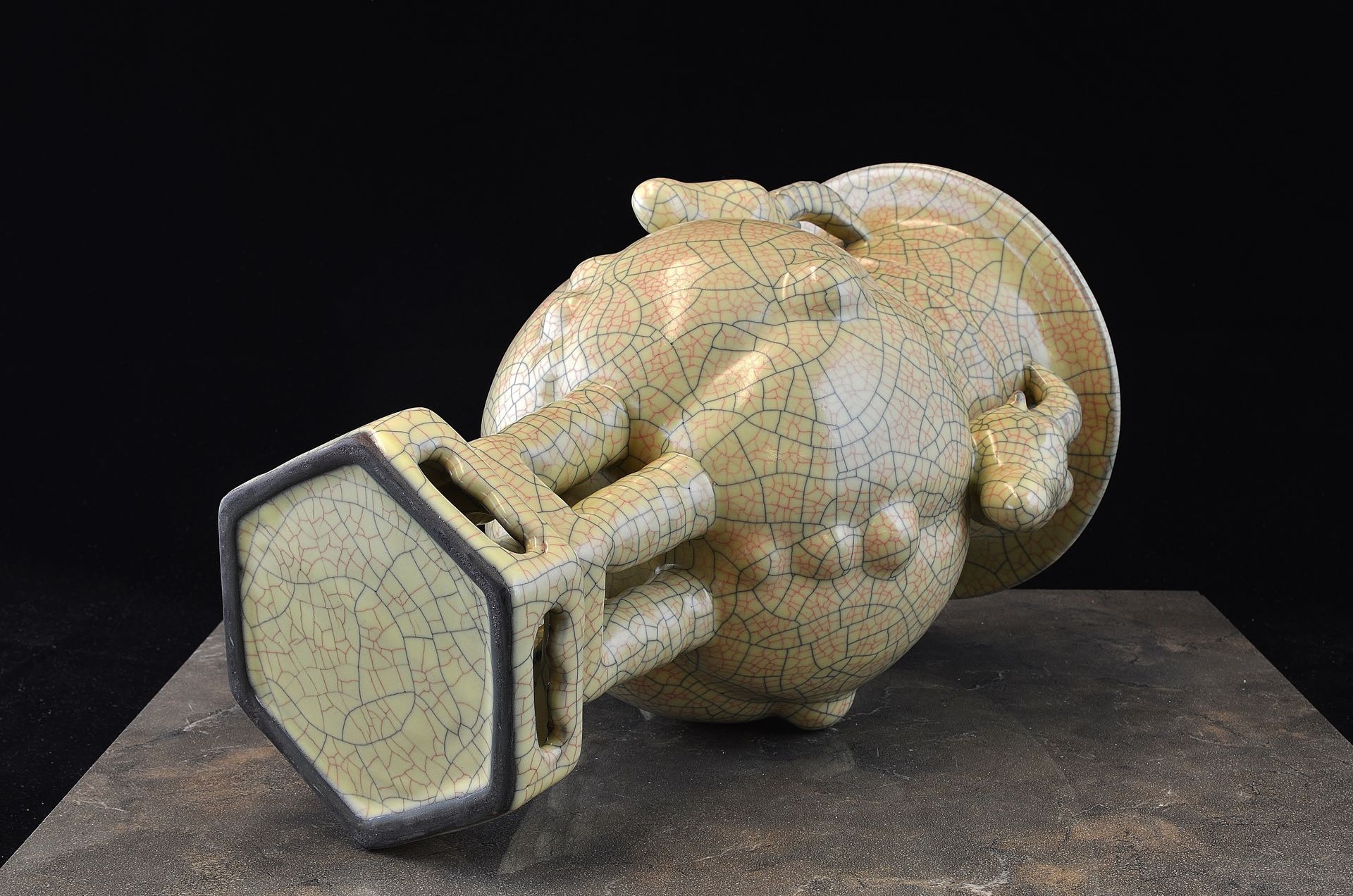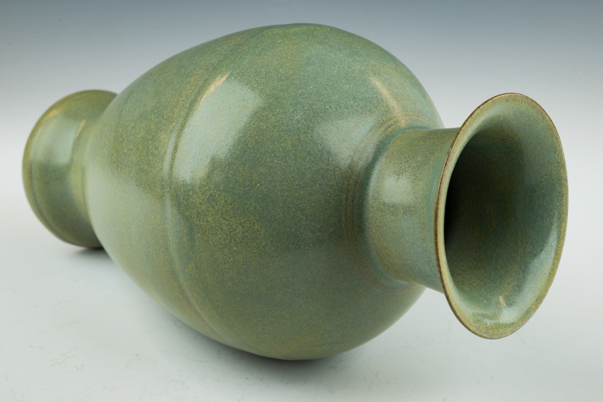 Sotheby's sold this flawed Guan vase for approx. $14,000,000.usd in Hong Kong in April 7, 2015. This vase has holes in the glaze in several areas. The form is not well balanced it looks like a beginner potter formed this piece. It is not an official court piece and is not marked as such and it came from the same collection they sold a Ru Ware flawed merchant pieces for $27,000,000 usd in Hong Kong They cheated and swindled the Collectors that purchased them. These corrupt Auction Houses cheat all collectors because they don't have the opportunity to purchase the rarest and finest pieces in the world also by keeping the finest pieces out of their auctions the average collector has no idea where their pieces fit the marketplace or what the value should be.