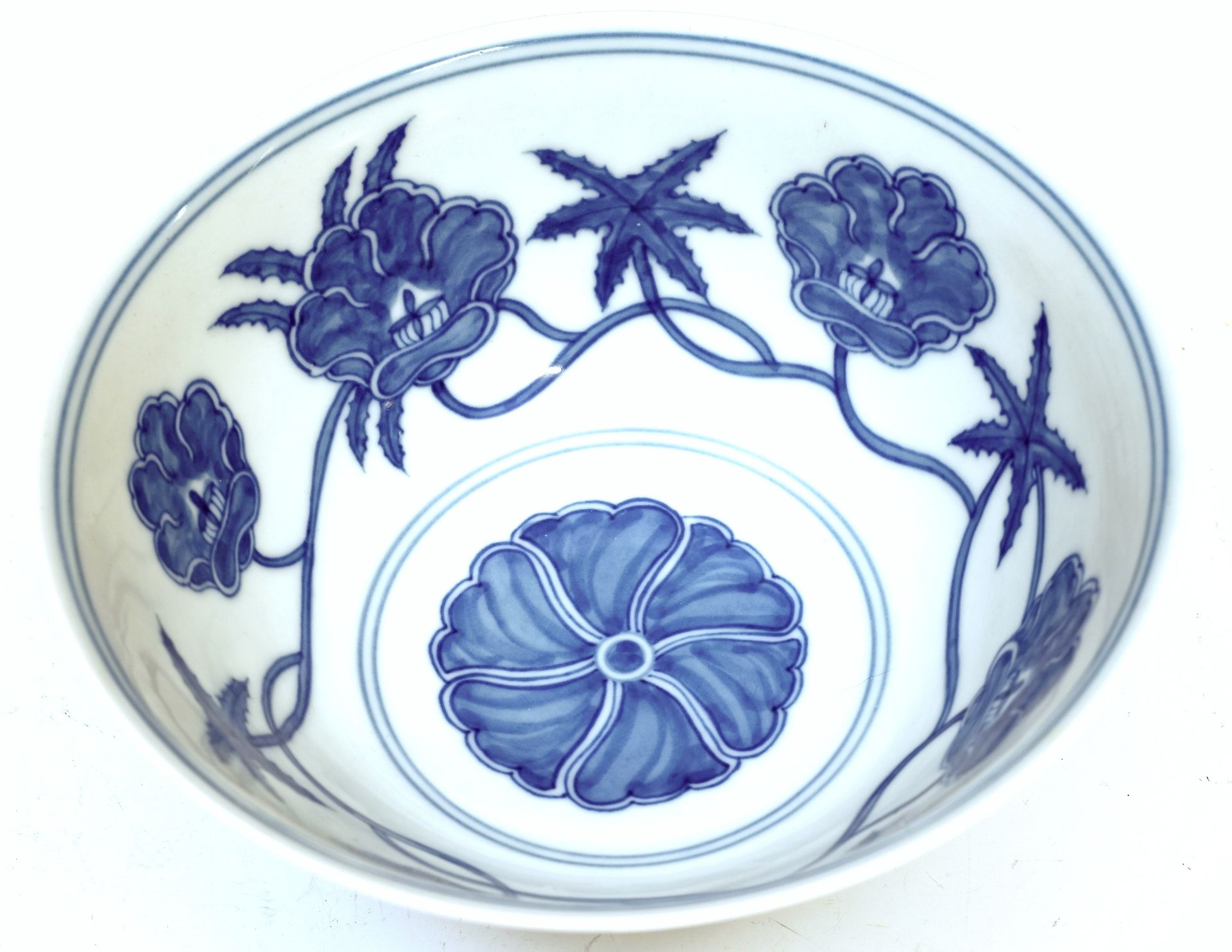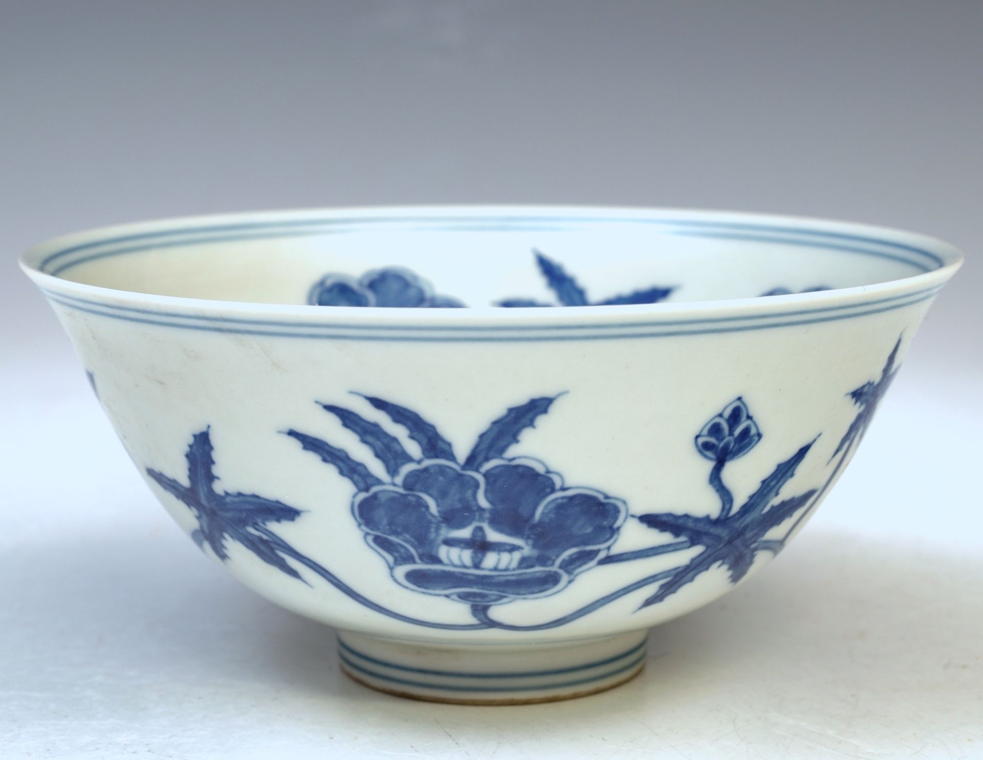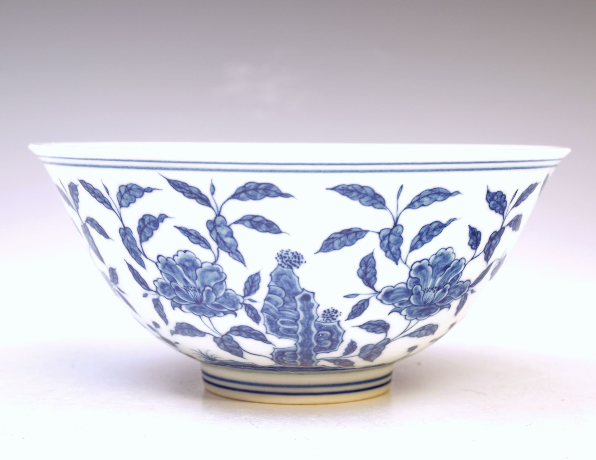 **Exquisite Chenghua Palace Bowl with Fine Marking and Period Significance** This exceptional bowl features intricate decoration, showcasing rocks, peony plants, and floral motifs. Notably, the samali blue cobalt utilized during the Yuan and early Ming dynasties possesses a unique hue that markedly differs from contemporary Chinese cobalt. Chenghua wares exhibit remarkable refinement in cobalt processing, avoiding the heaping and piling that often disrupt the surface glaze. Furthermore, the artisans skillfully blended imported cobalt with locally sourced Pitang cobalt, resulting in a sophisticated color palette. It is important to emphasize that the imported cobalt used in this period has not entered the market for over five centuries, thus rendering it inimitable. Collectors must possess a discerning eye to appreciate the nuances of these pieces. The refinement of imported cobalt during the Chenghua period lends to the wares a spectrum of beautiful tones, making them easily distinguishable from works of other eras. This bowl displays flaking in the biscuit, which further attests to its age and authenticity. This remarkable piece measures 5 3/4 inches in diameter and is currently available for sale. For further inquiries regarding this splendid bowl, please do not hesitate to contact me. ppjrs