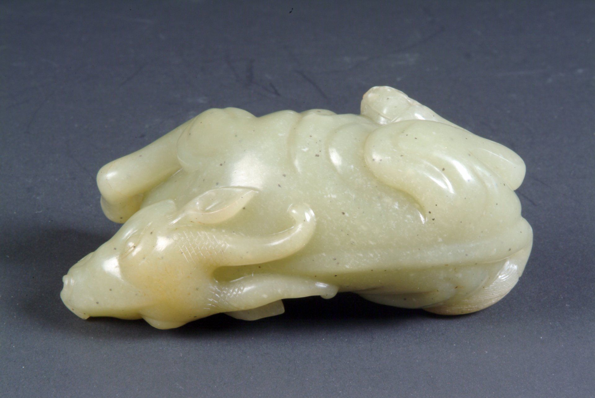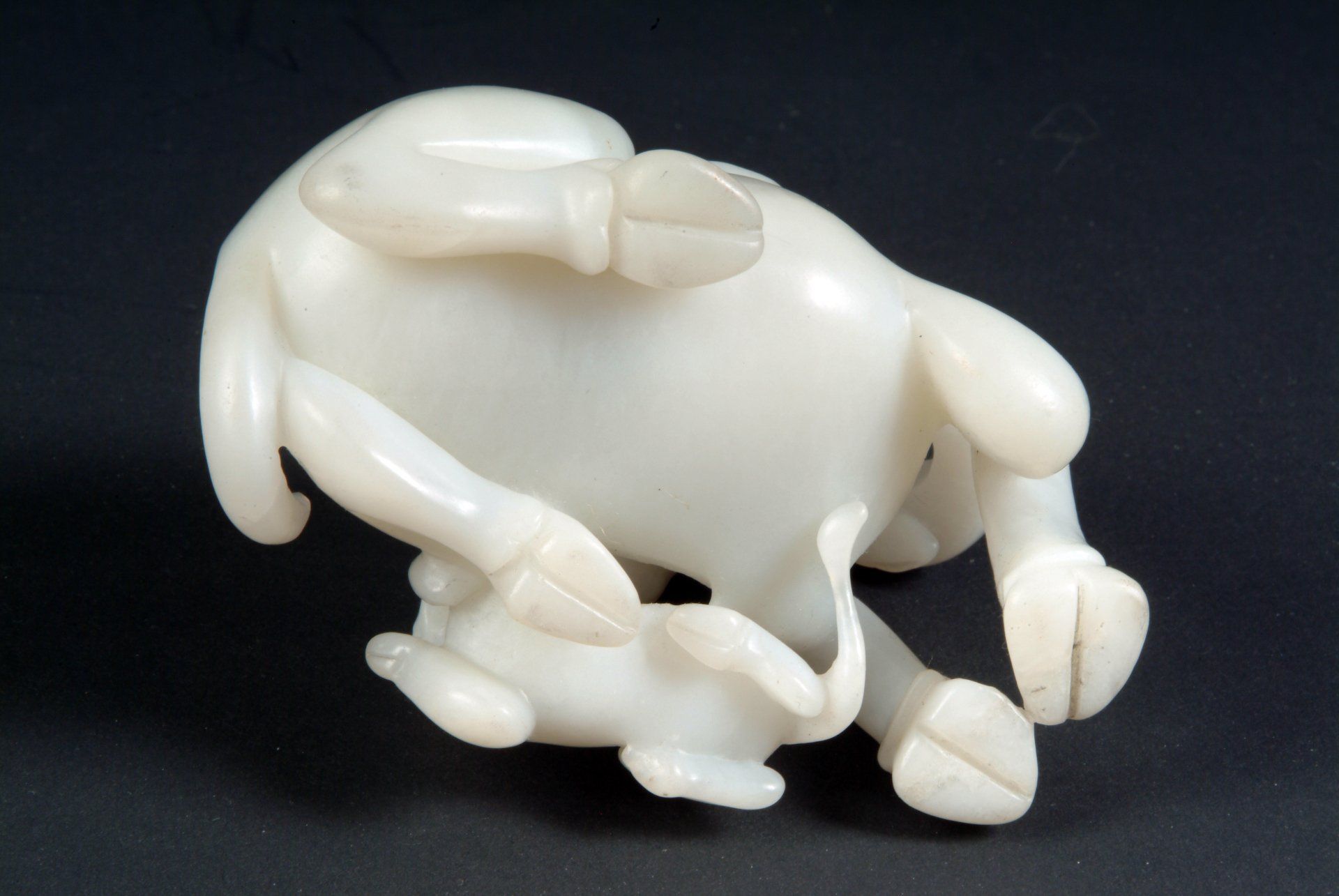 White Jade Sculpture of a Buffalo and Calf from the Qing Dynasty