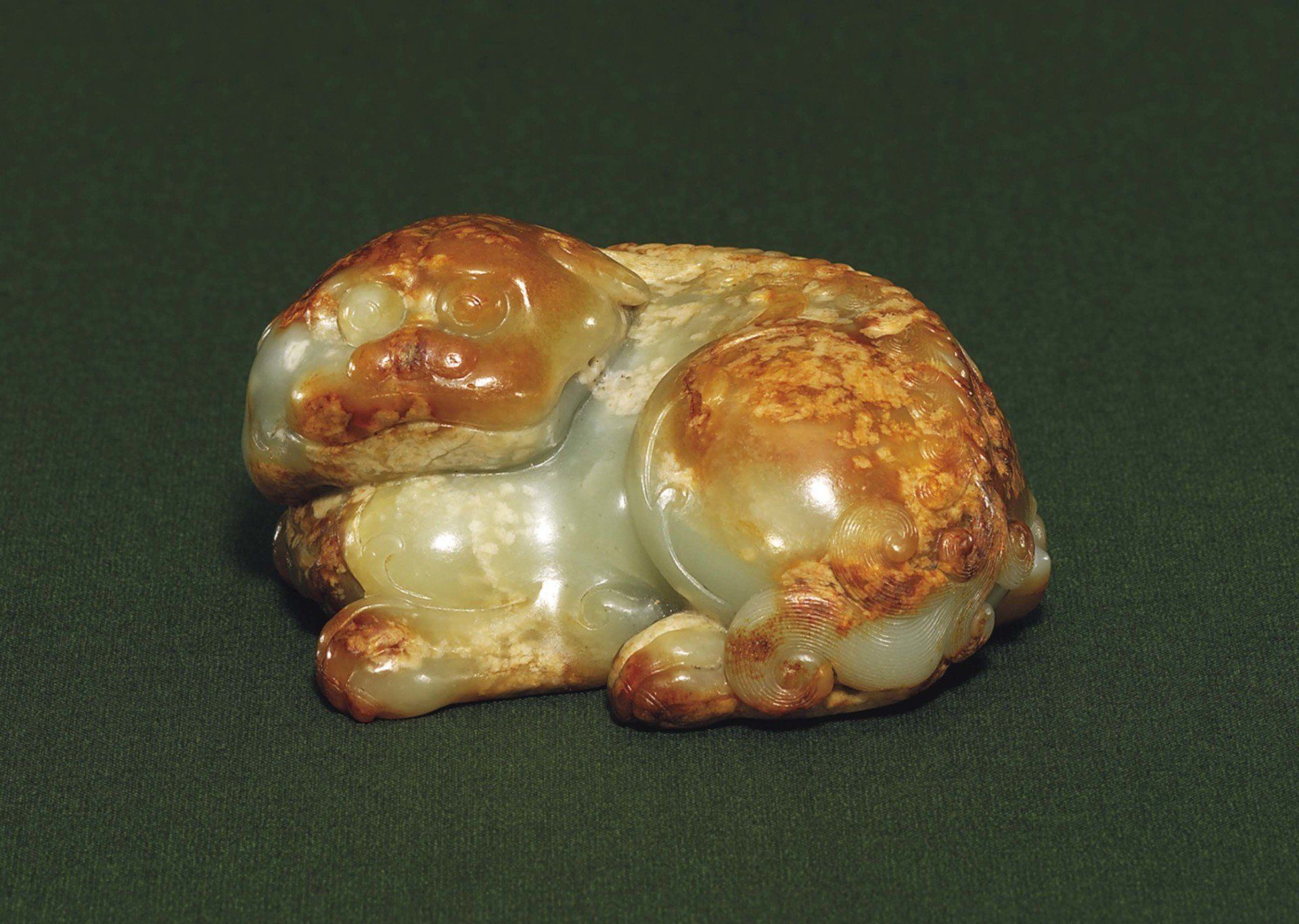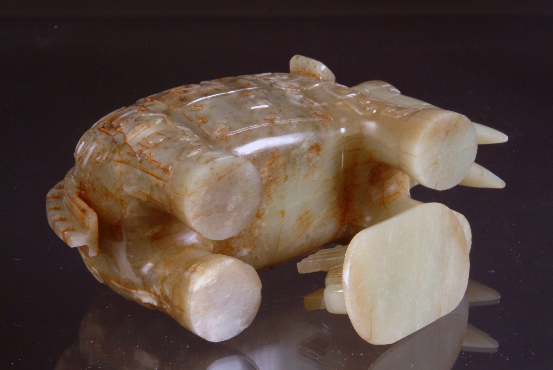 Sotheby's Sold this Six Dynasties yellow and russet jade figure of a Mythical Beast in Hong Kong on 4/3/2019