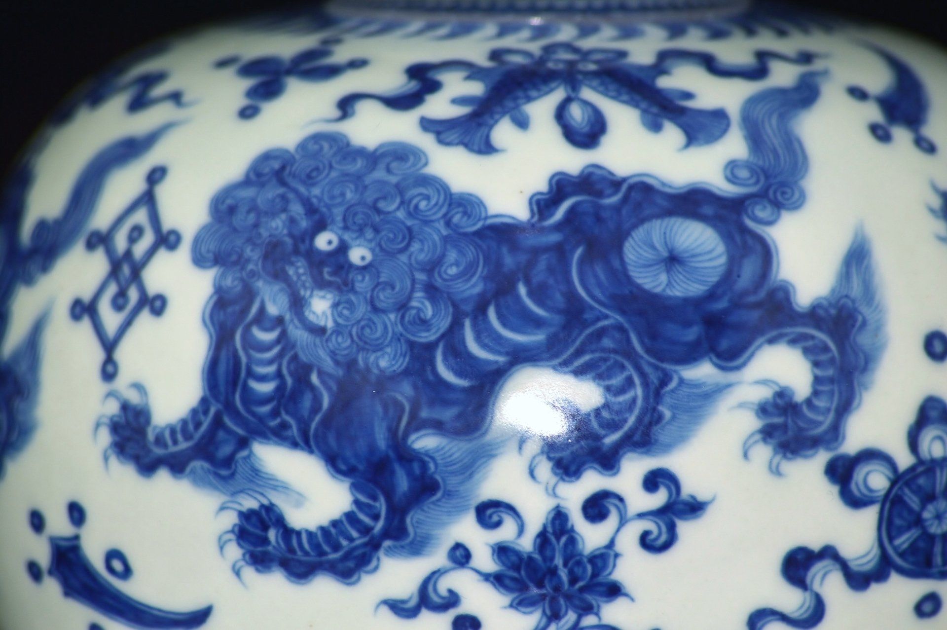 This exquisite artifact, known as the Blue and White Ming Dynasty Chenghua Mark and Period Imperial Buddhist Lion Jar, exemplifies the artistry of the Chenghua period, which spanned from 1465 to 1487. Measuring approximately 5 1/8 inches in height, this jar is a quintessential representation of the highly coveted Chenghua wares. Its delicate craftsmanship showcases an extraordinary level of skill and precision that truly merits in-person observation to fully appreciate the artistic mastery involved in its creation during the Ming Dynasty. Upon consulting auction catalogs, scholarly texts, and museum collections, one will find it difficult to locate a comparable example of a Chenghua Jar available in the marketplace. The jar features a sophisticated form and vibrant coloration, adorned with remarkably controlled freestyle brushwork, executed with what appears to be minimalistic hairbrush strokes. This attention to detail is emblematic of the finest Chenghua wares. The decorative motifs include four Buddhist Lions and various Buddhist symbols. An examination through a jeweler’s loupe reveals noticeable flaking in the biscuit, an indicator of the jar's significant age. Among Chinese ceramics, blue and white wares from this period are among the most sought after, distinguished by the stunning cobalt blue hues that are characteristic of Chenghua production. The cobalt utilized during this dynasty has a distinct blackish tone, derived from imported Samali blue cobalt believed to have originated in Persia, though the specific source remains uncertain and has not been imported for over five centuries. In addition, local cobalt known as Pitang was employed. The mixing of these two cobalt types resulted in a refined palette of colors that defined the aesthetic quality of Chenghua wares. Artisans of this period skillfully painted fine outlines filled in with broad brushstrokes, demonstrating a unique approach to composition. The refinement of clay and the use of high-firing kilns often resulted in aesthetic peculiarities, such as a mottled appearance on the undersides of larger vessels or wavy glaze textures discernible under reflective light. This particular glaze is easily identifiable due to its fine quality and the presence of minute, even bubbles observable with a magnifying lens. In summary, the true Imperial blue and white Chenghua wares represent the pinnacle of ceramic artistry within the Ming Dynasty, and this jar stands as a testament to that legacy.
