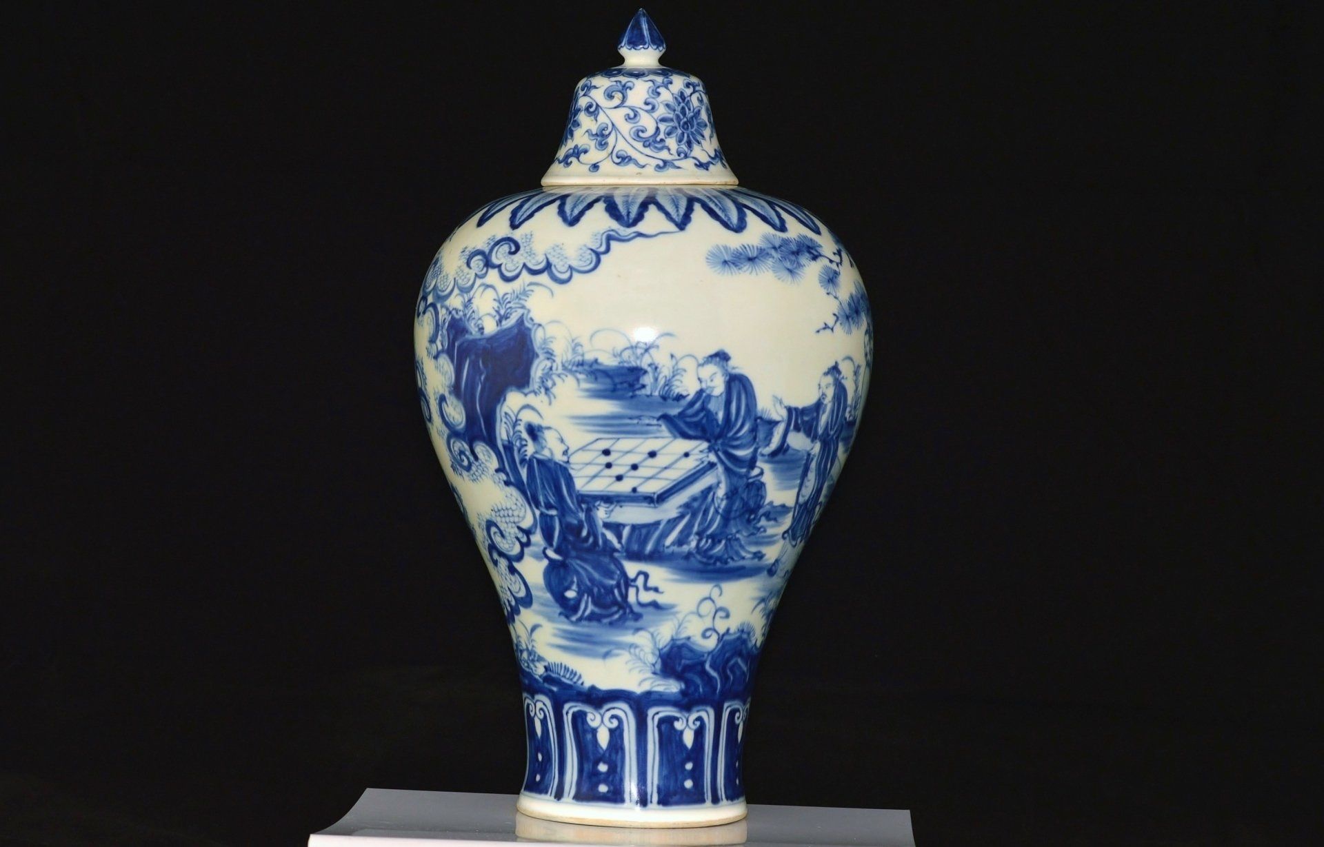 Significant Imperial Blue and White Meiping Story Vase from the 15th Century Ming Dynasty, Chenghua Mark and Period