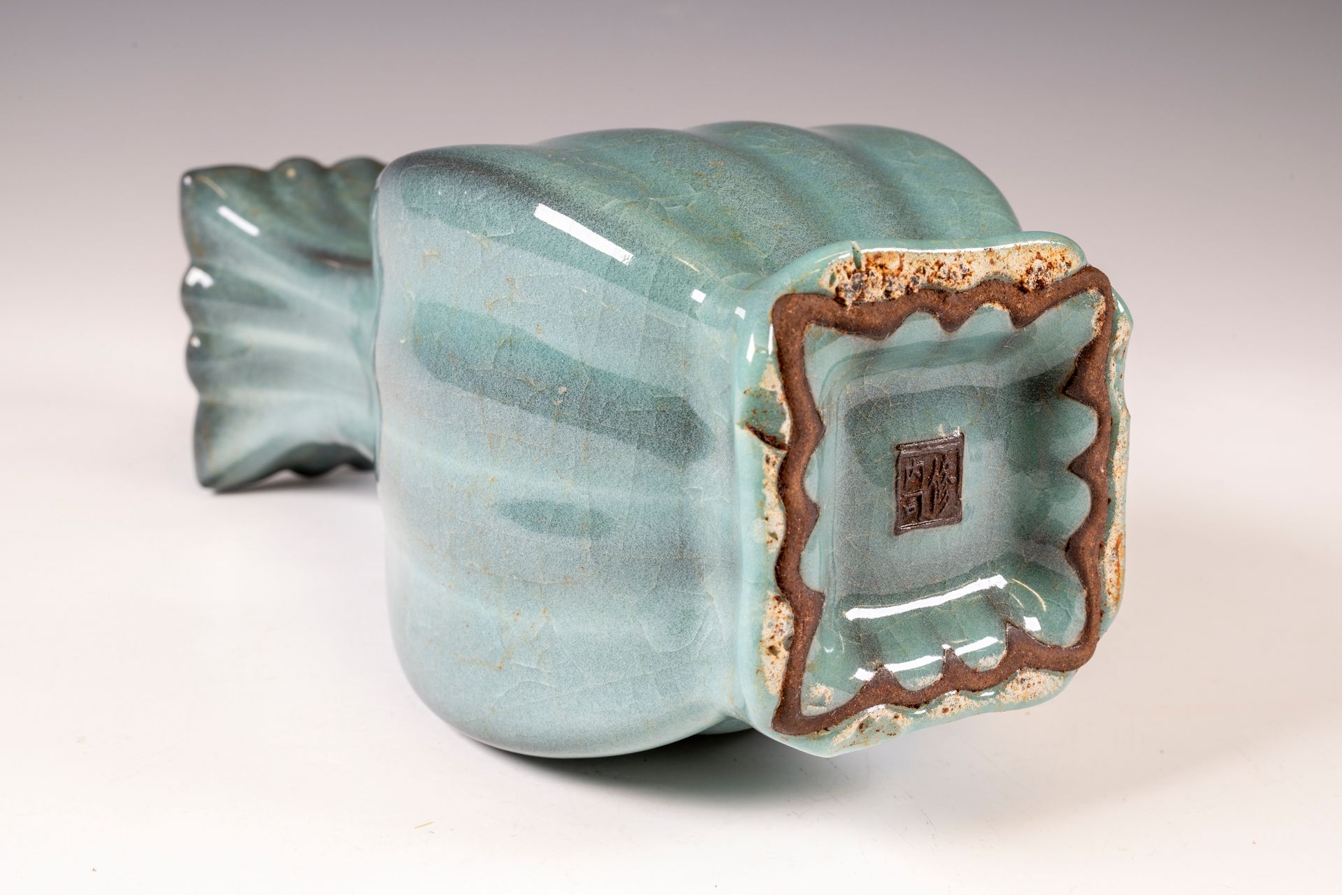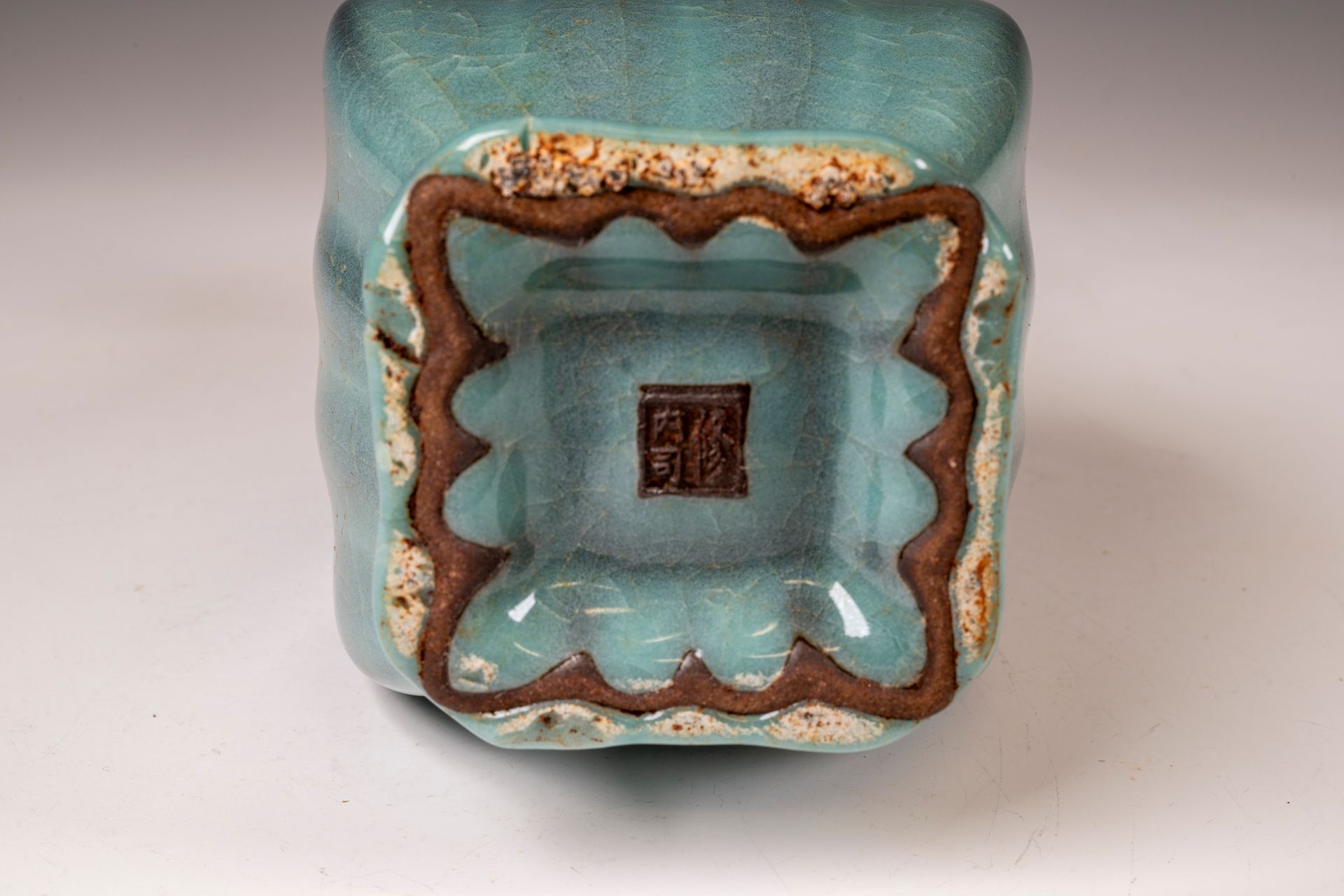 Southern Song Dynasty Guan Yao Official Xiuneisi Inner Kiln Imperial Guan Ware Marked and Period Square-Ribbed Vase