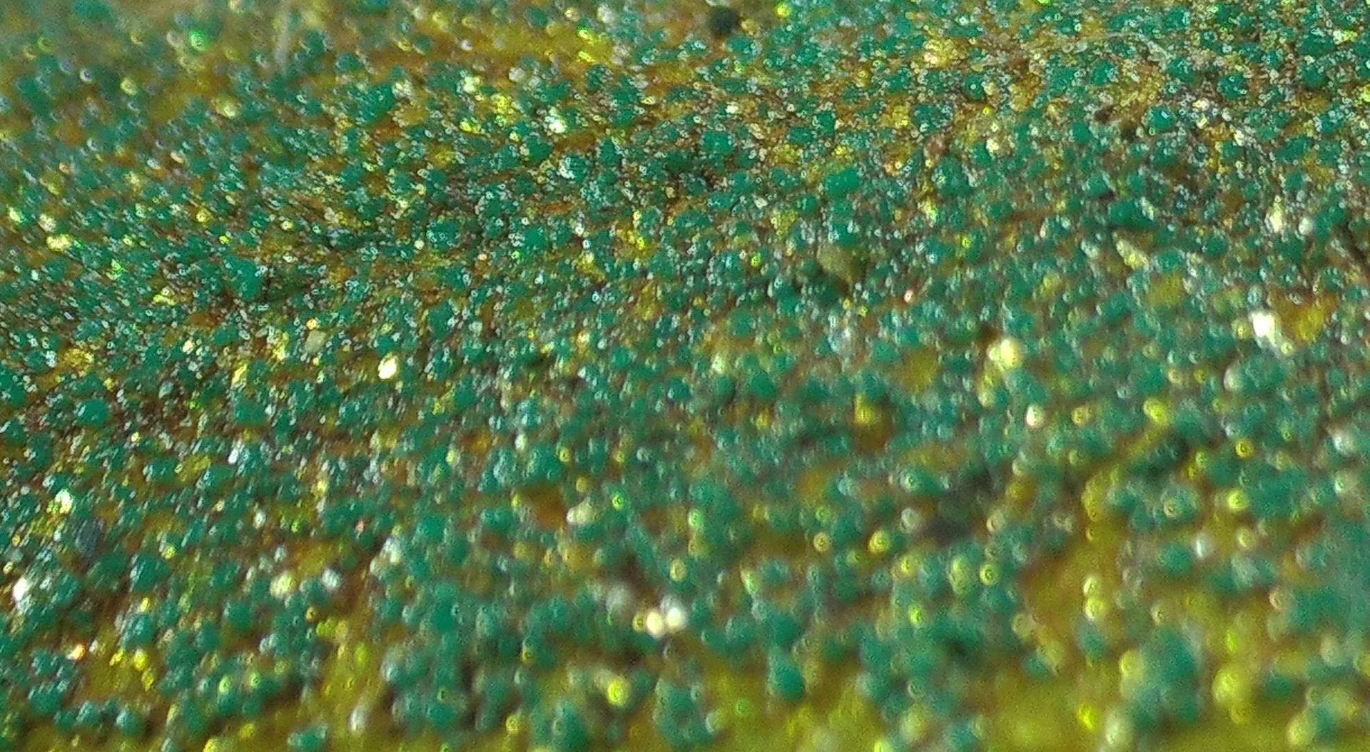 Most crystals simply begin to grow using available molecules. This results in discrete crystals whose sizes depend on available material. But malachite is different. It seldom forms discrete crystals of good size. Instead, scientists say, developing malachite crystals “split”, diverging into tiny needles, packed together in a fanlike arrangement.