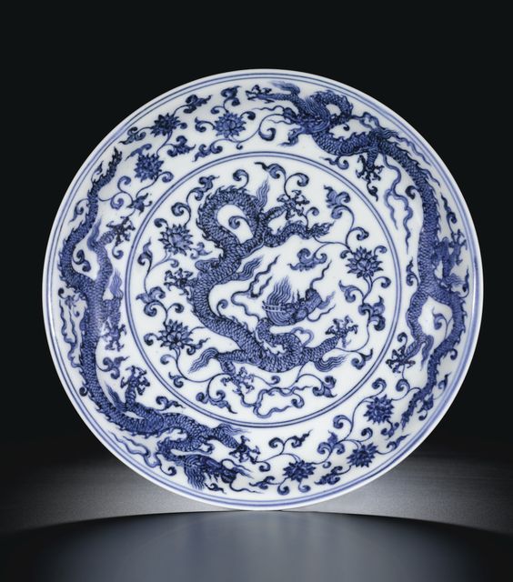 Christie's sold this Ming Xuande Blue and White Lotus Dish