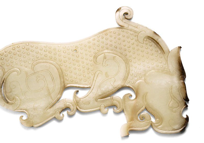 Sotheby's Sold this Eastern Zhou Dynasty Yellow Jade Animal-Shaped Plaque in Hong Kong 4/3/2019