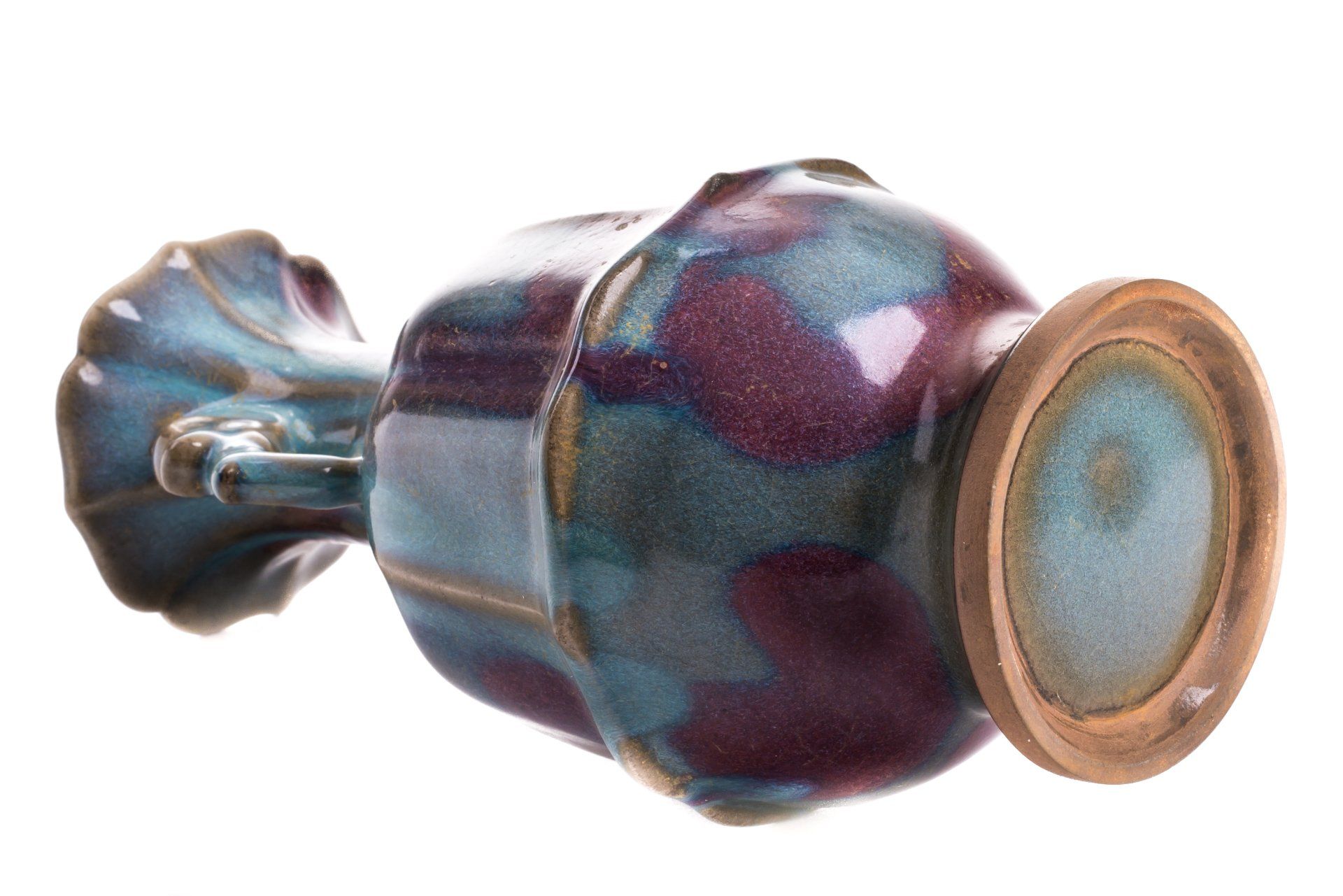 Mi obra maestra: jarrón en forma de mazo de cerámica Guan. Este jarrón, muy fino y esmaltado, mide 21 cm de alto, tiene una forma hermosa y tiene varios hilos dorados, como la copa Sotheby y el plato. Este esmalte blanquecino se vuelve más fino alrededor de la boca y el anillo del pie no está esmaltado, lo que muestra el cuerpo marrón oscuro. ppjrs