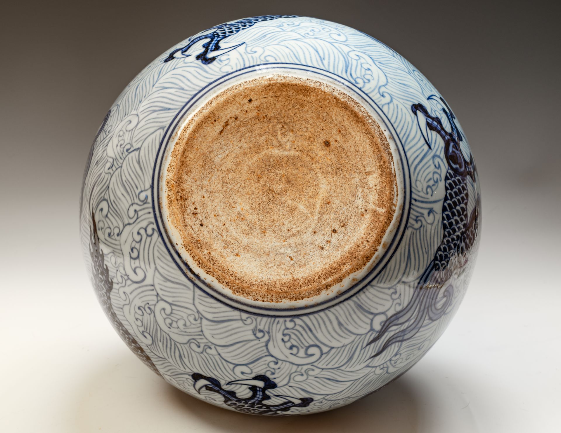 Vase globulaire à décor de dragon, bleu impérial et blanc, début du XVe siècle, dynastie Ming, marqué Yongle.