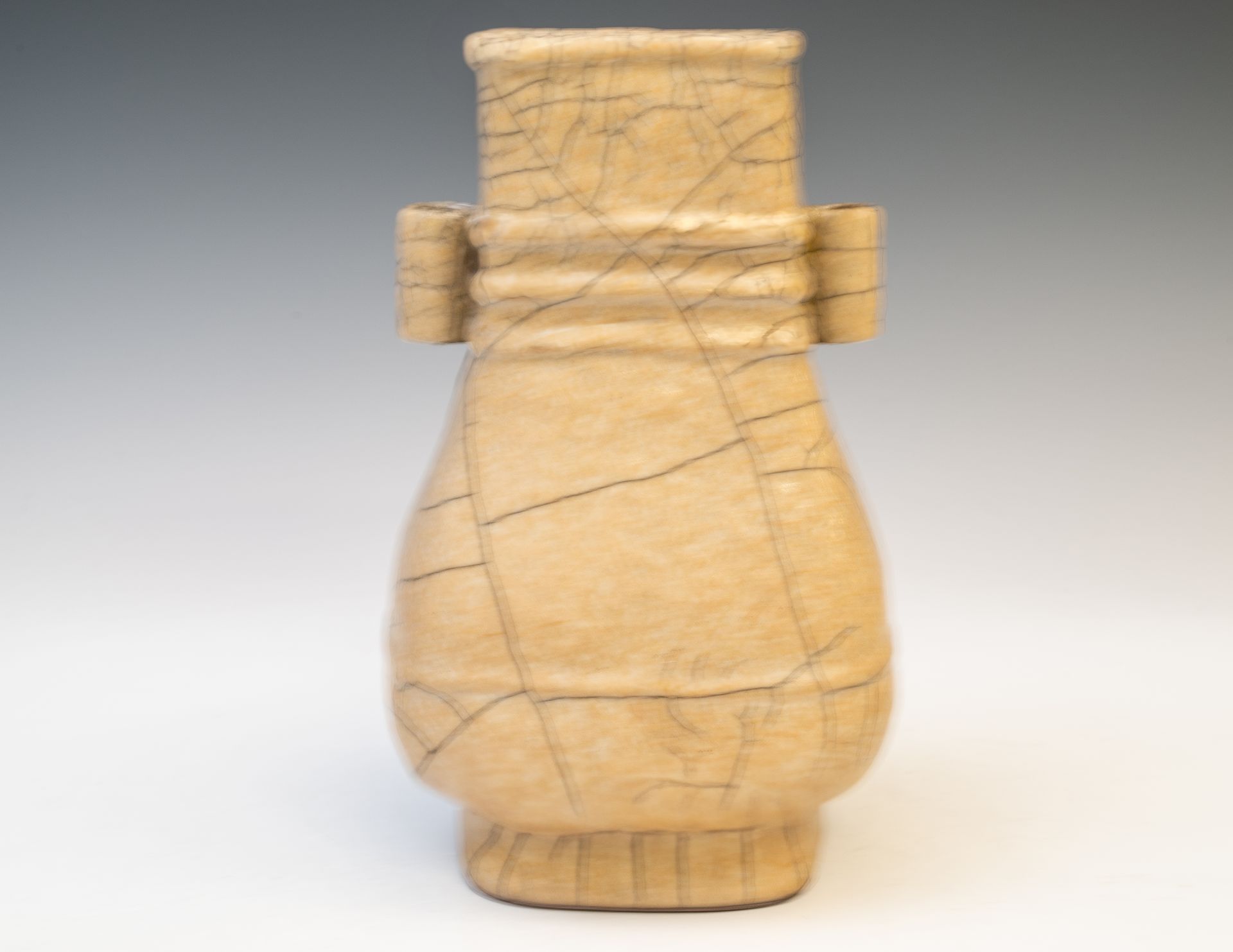 אגרטל Ge Kiln Ge Ware עם צורת Hu וידיות צינור משושלת סונג/יואן הדרומית, כולל רגל ברזל