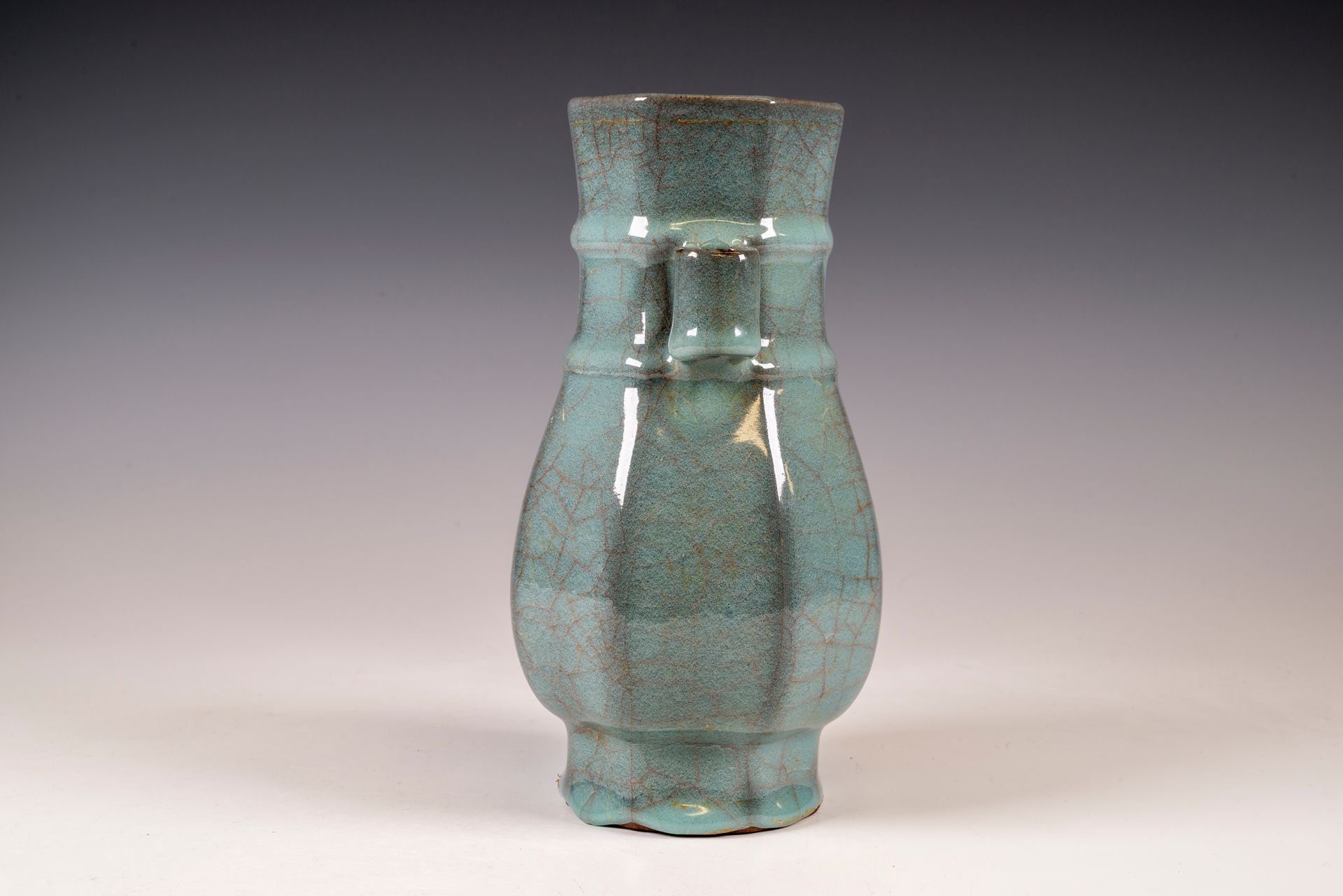 Шестиугольная ваза «Мэйпин» из императорского фарфора «Гуань» эпохи династии Южная Сун, изготовленная во внутренней печи Сюнейсы, маркирована и датирована периодом изготовления.